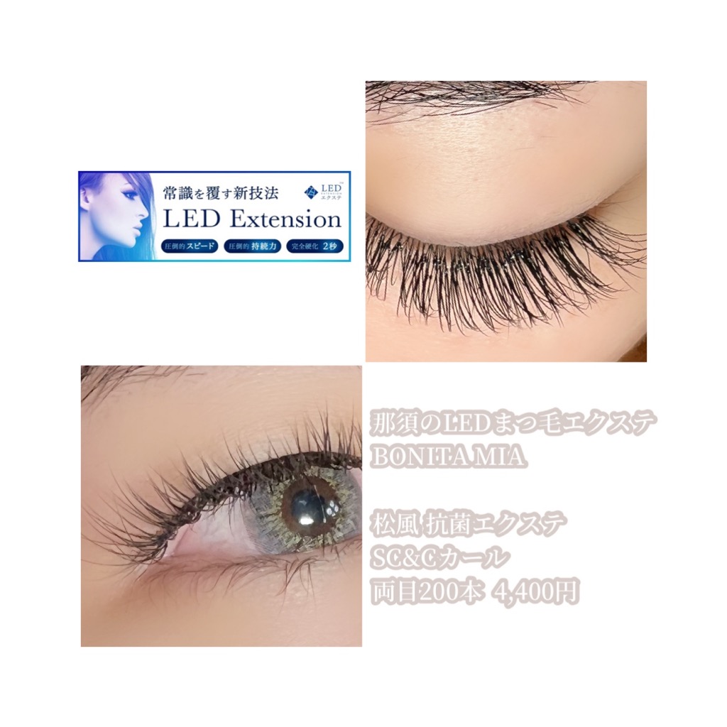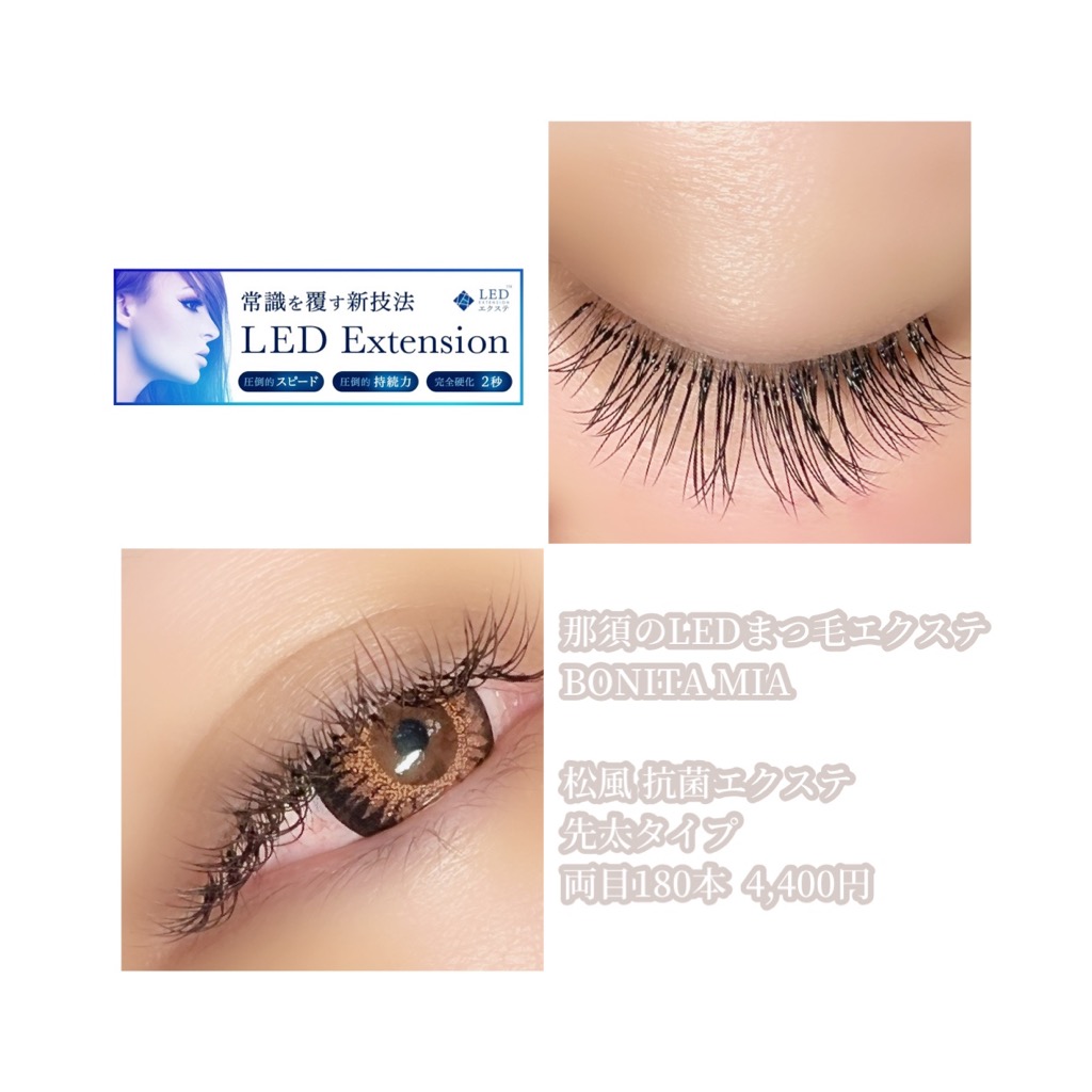 最新のまつ毛エクステ、LEDマツエクができる那須塩原の個室サロン“BONITA MIA(ボニータ ミア)”です。