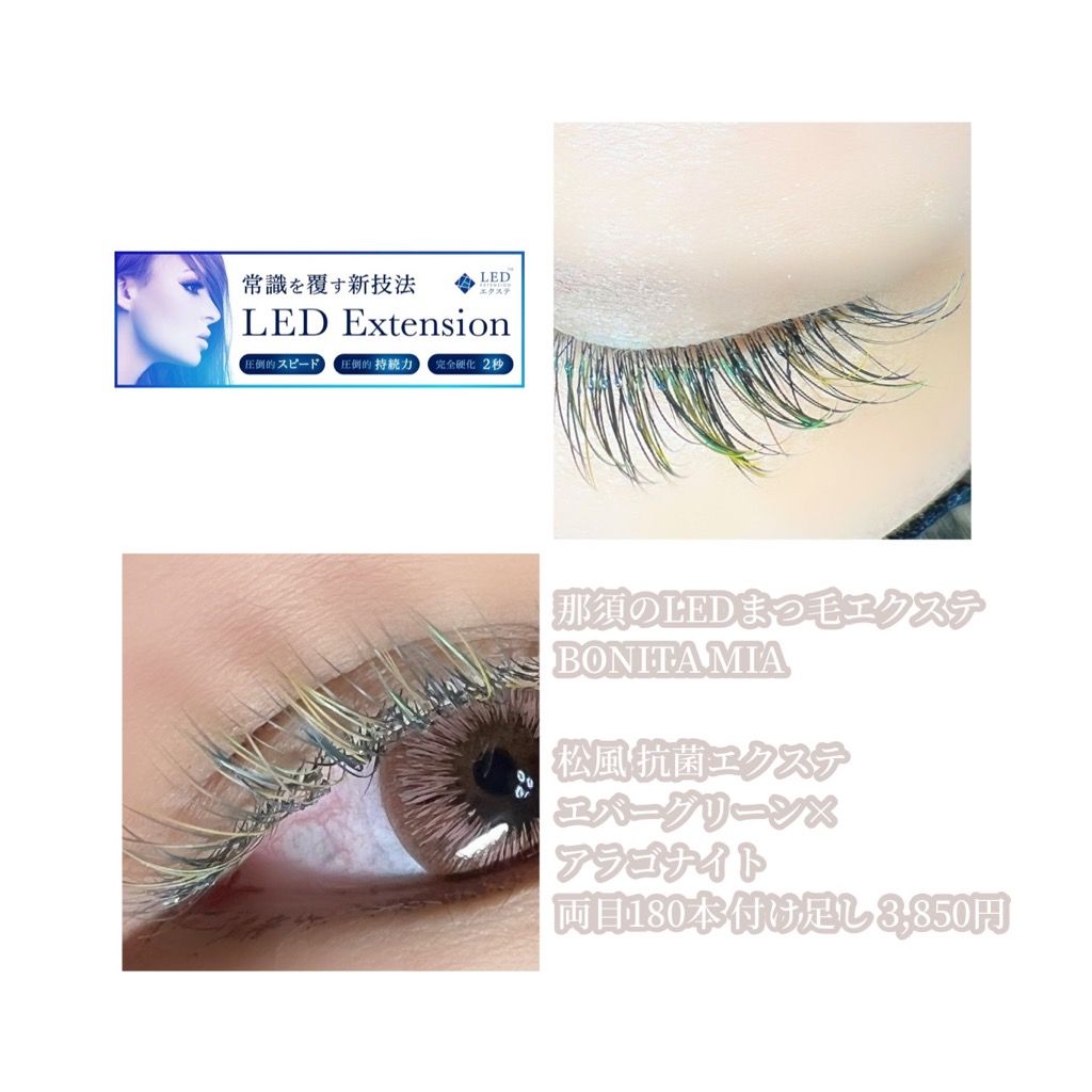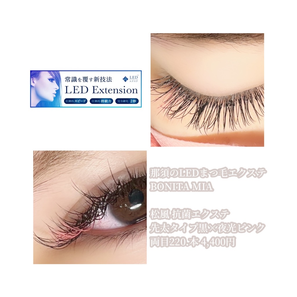 最新のまつ毛エクステ、LEDマツエクができる那須塩原の個室サロン“BONITA MIA(ボニータ ミア)”です。