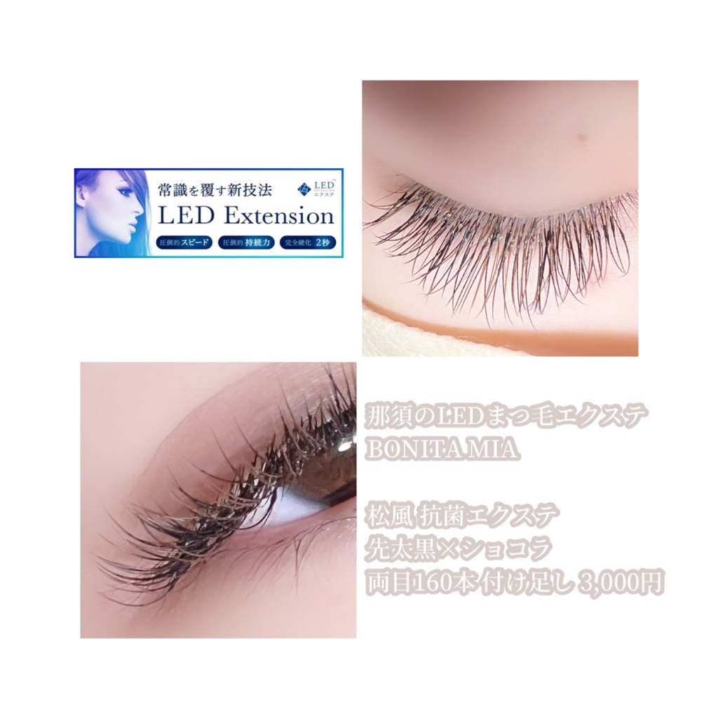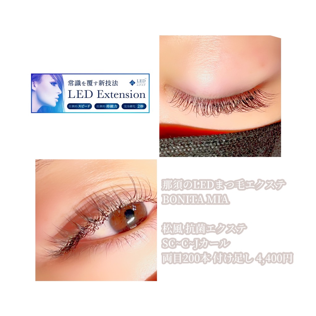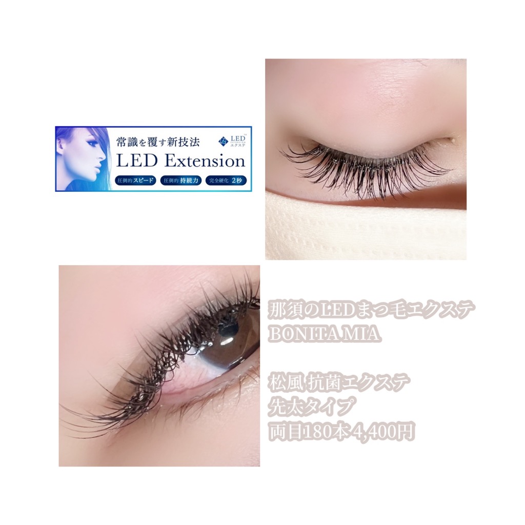 最新のまつ毛エクステ、LEDマツエクができる那須塩原の個室サロン“BONITA MIA(ボニータ ミア)”です。