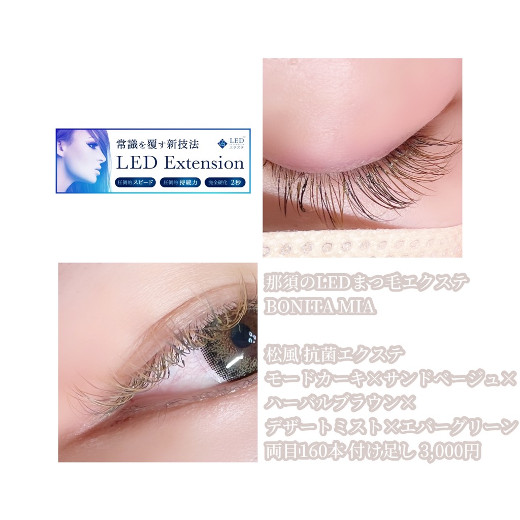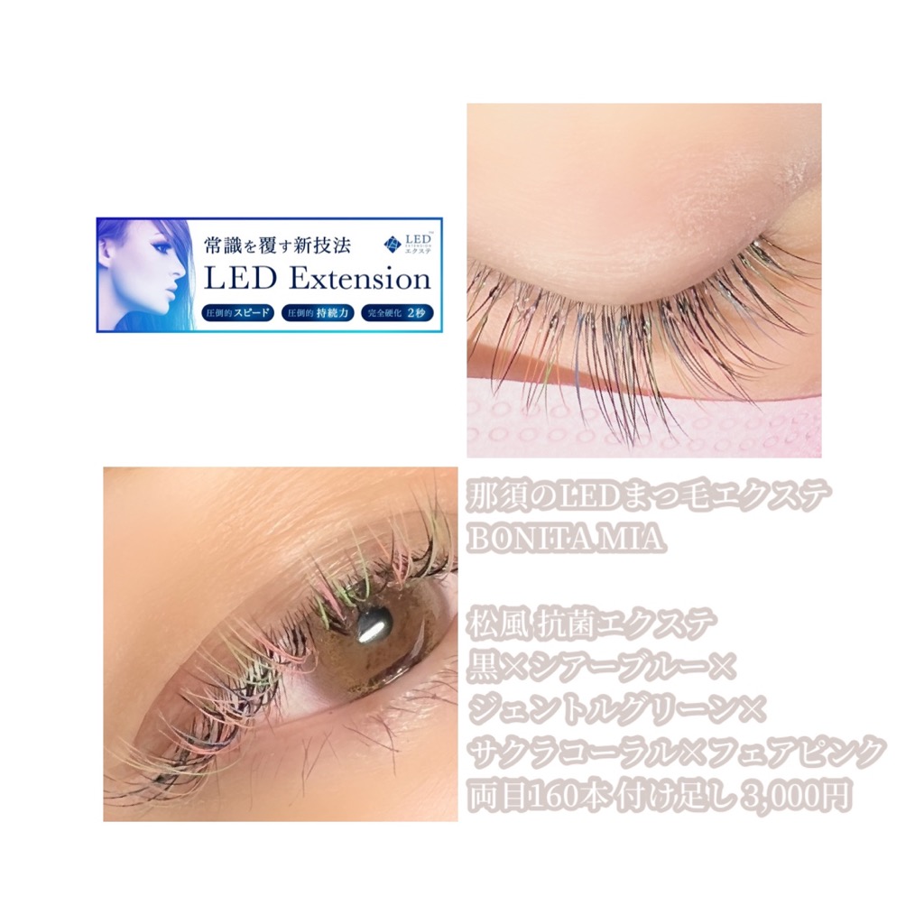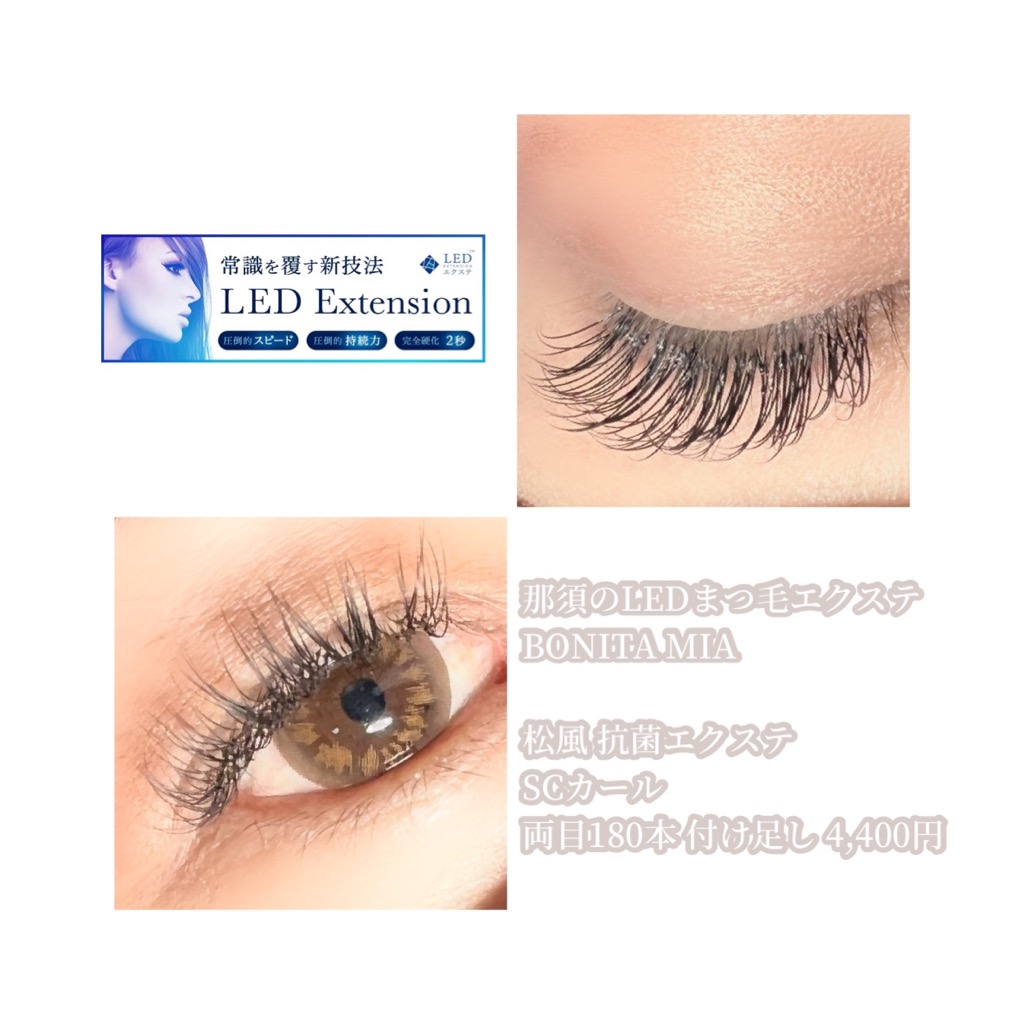 最新のまつ毛エクステ、LEDマツエクができる那須塩原の個室サロン“BONITA MIA(ボニータ ミア)”です。