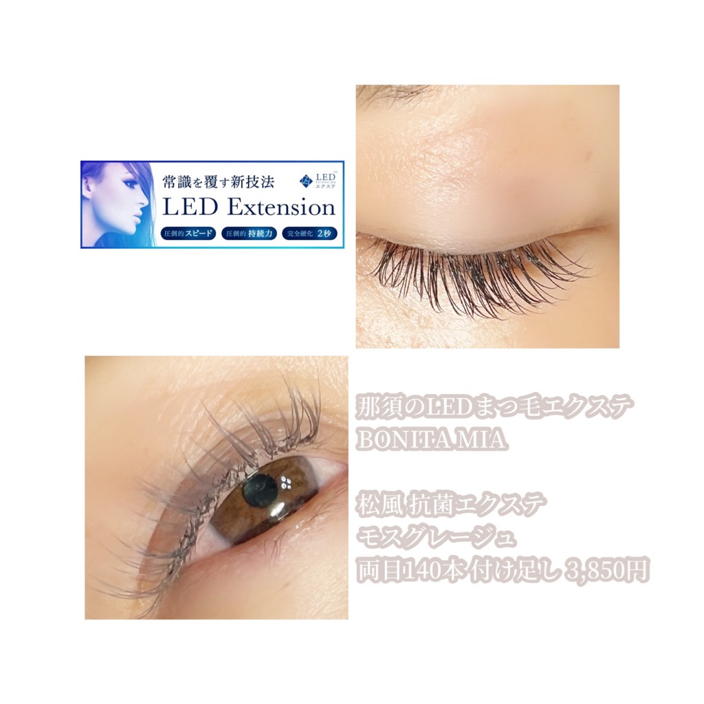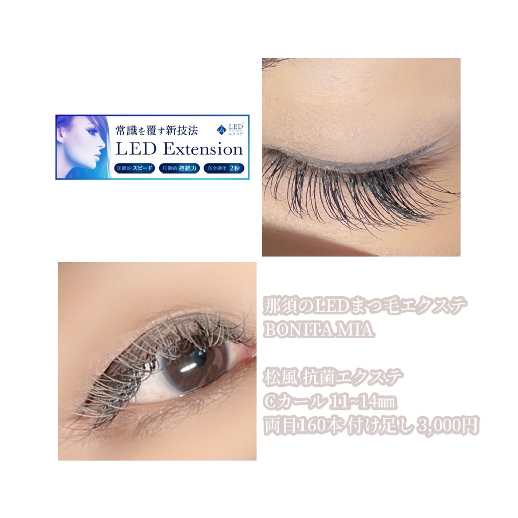 最新のまつ毛エクステ、LEDマツエクができる那須塩原の個室サロン“BONITA MIA(ボニータ ミア)”です。