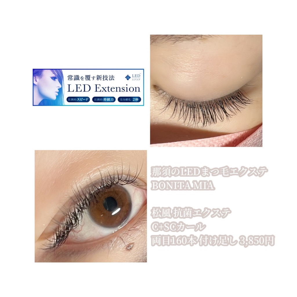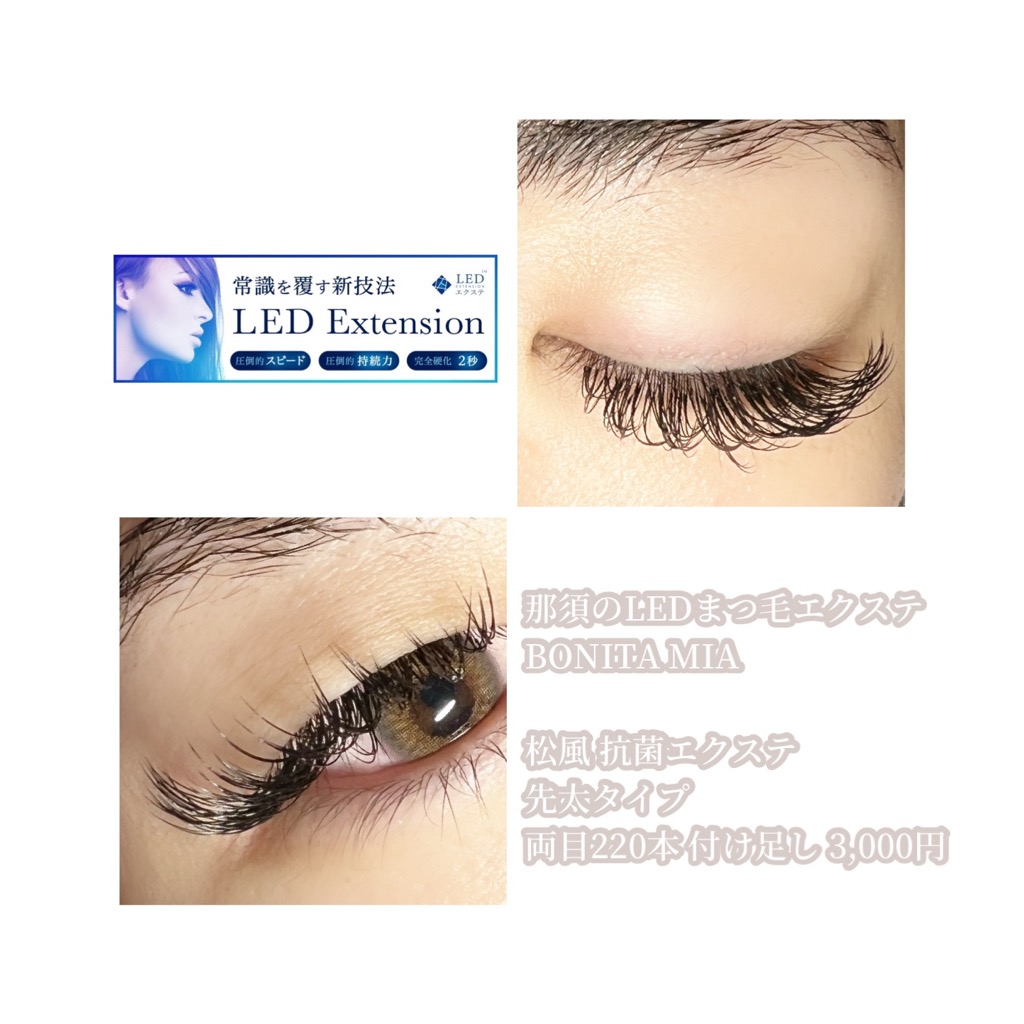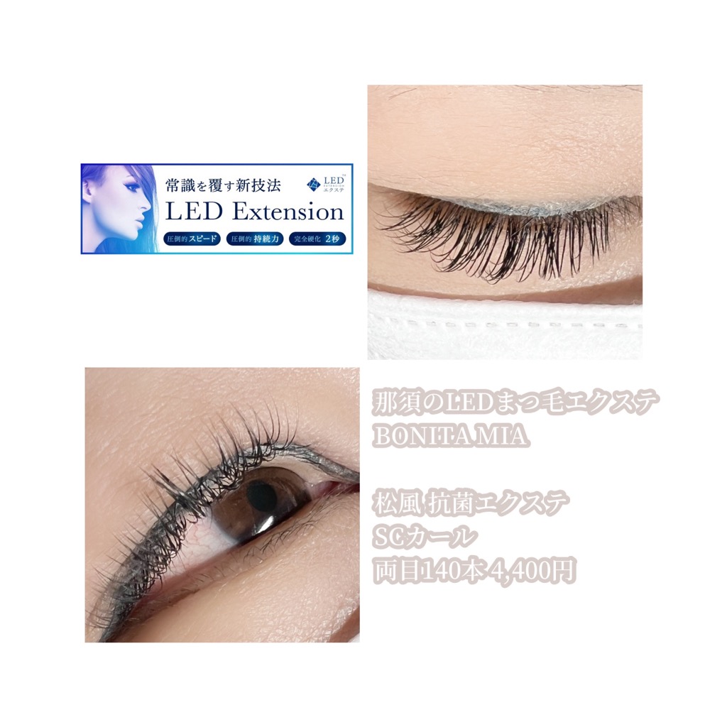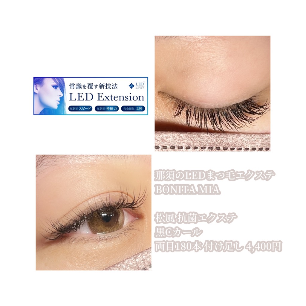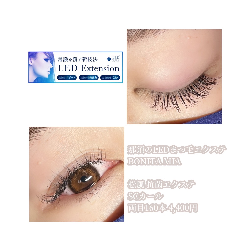 最新のまつ毛エクステ、LEDマツエクができる那須塩原の個室サロン“BONITA MIA(ボニータ ミア)”です。