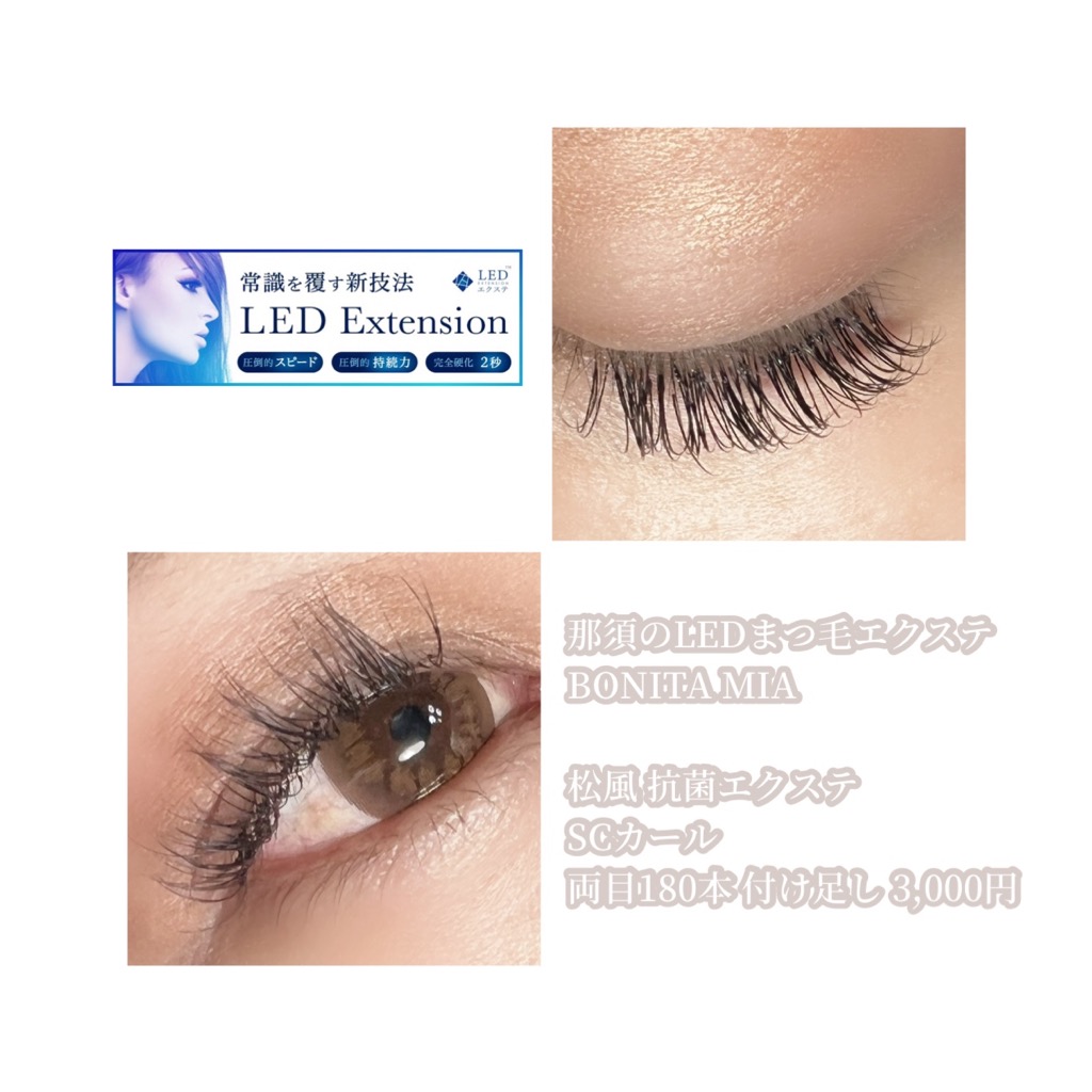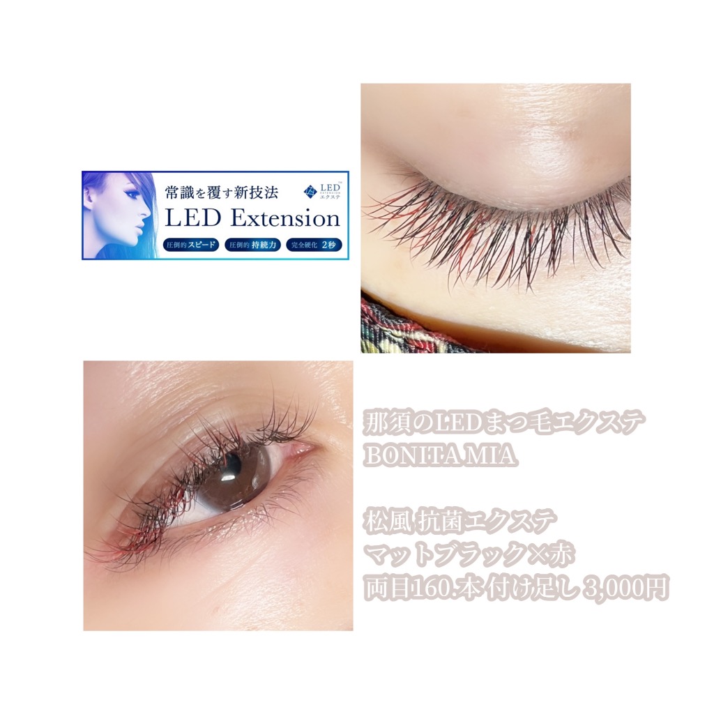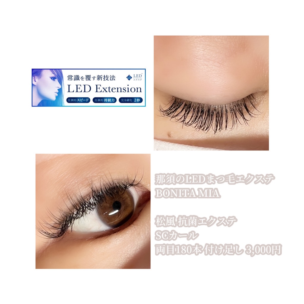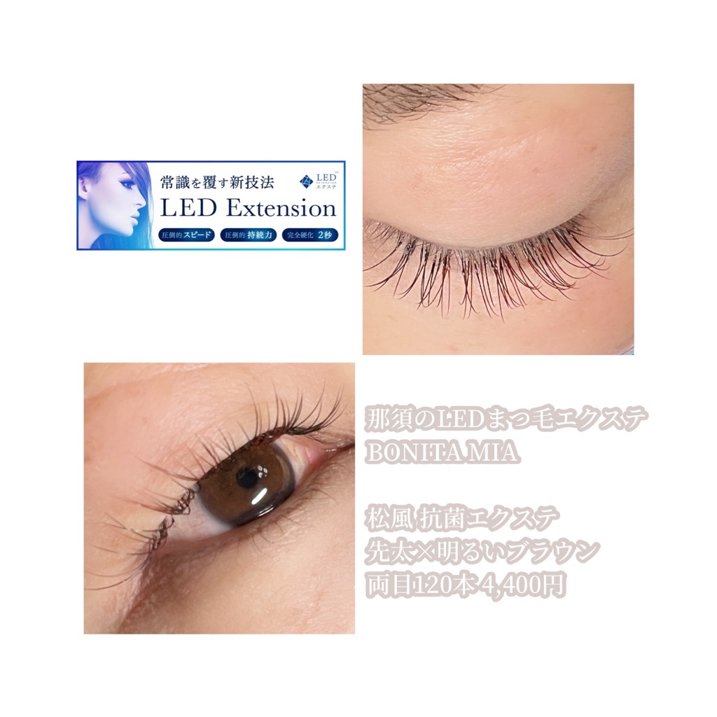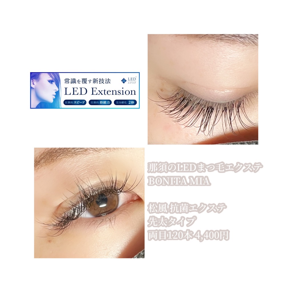 最新のまつ毛エクステ、LEDマツエクができる那須塩原の個室サロン“BONITA MIA(ボニータ ミア)”です。