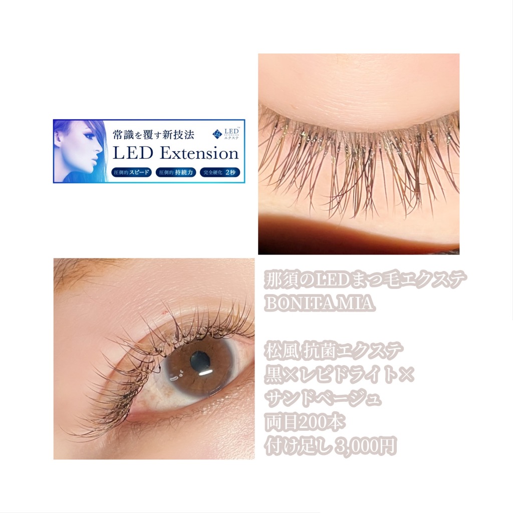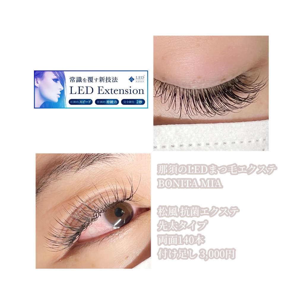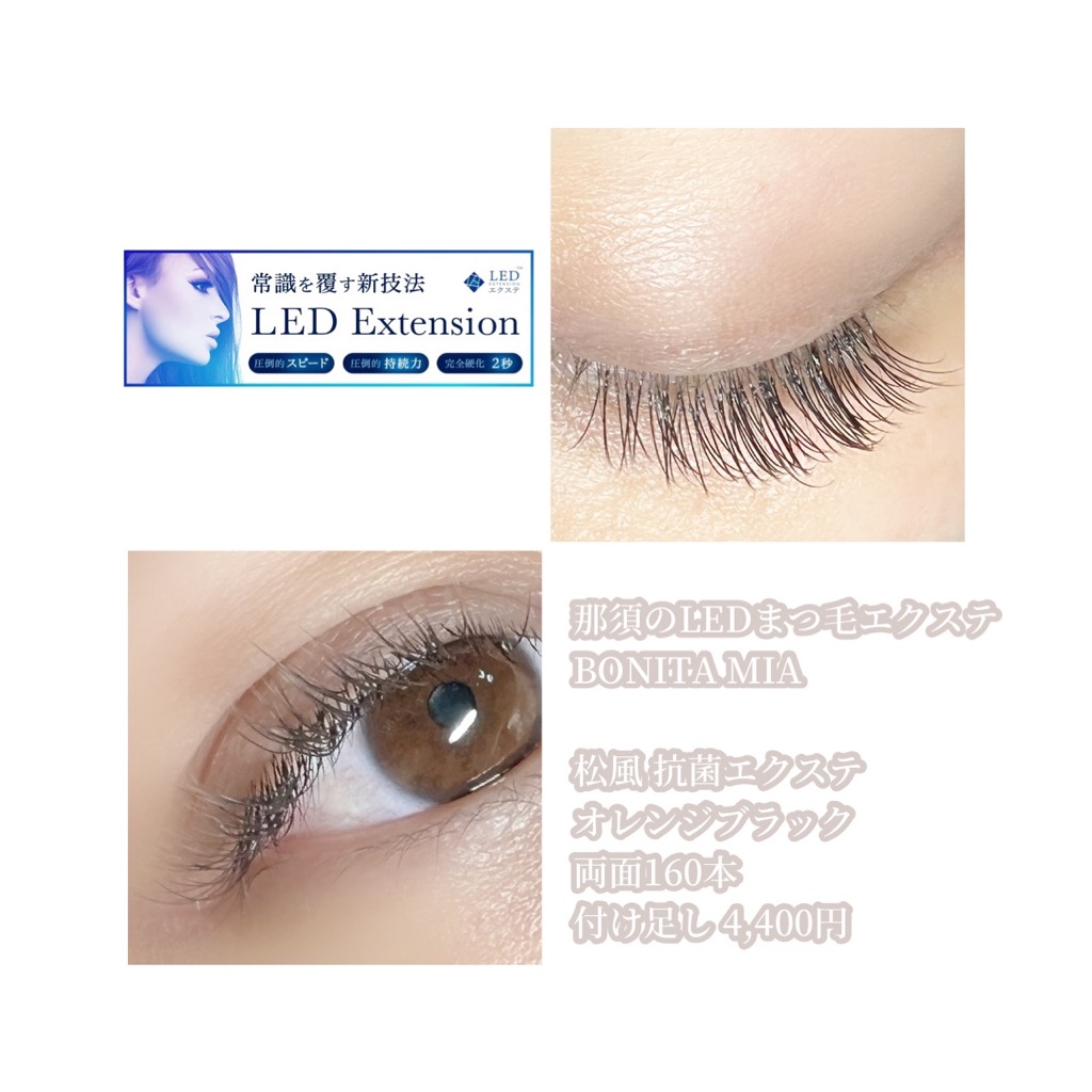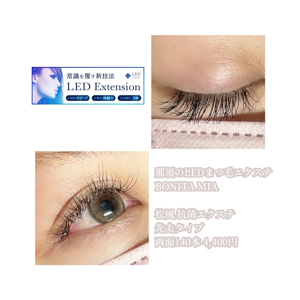 最新のまつ毛エクステ、LEDマツエクができる那須塩原の個室サロン“BONITA MIA(ボニータ ミア)”です。