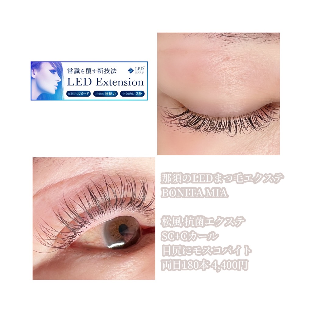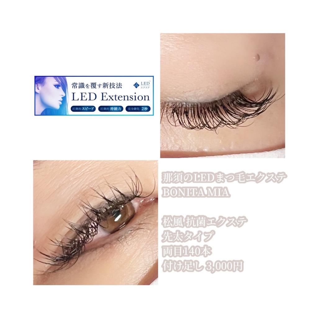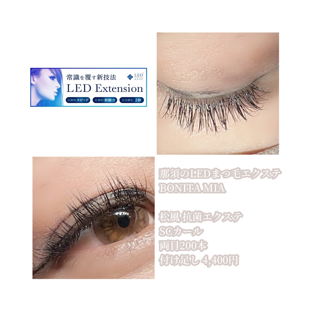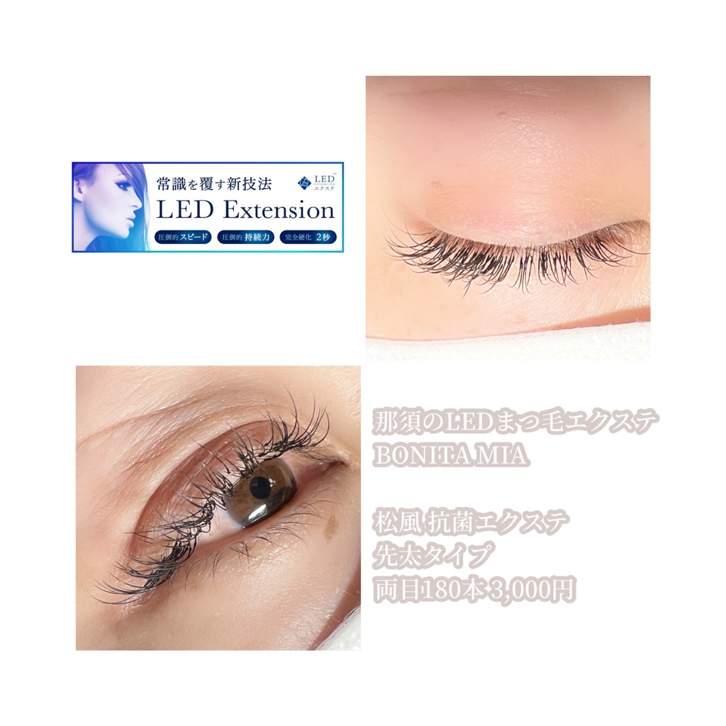 最新のまつ毛エクステ、LEDマツエクができる那須塩原の個室サロン“BONITA MIA(ボニータ ミア)”です。
