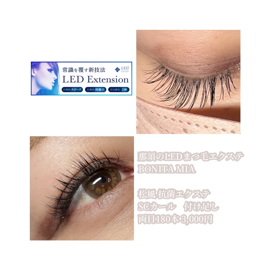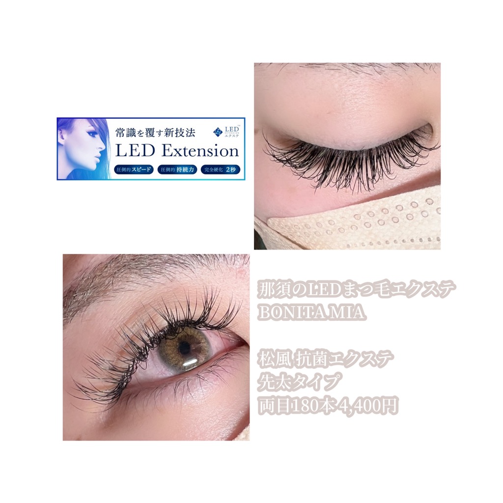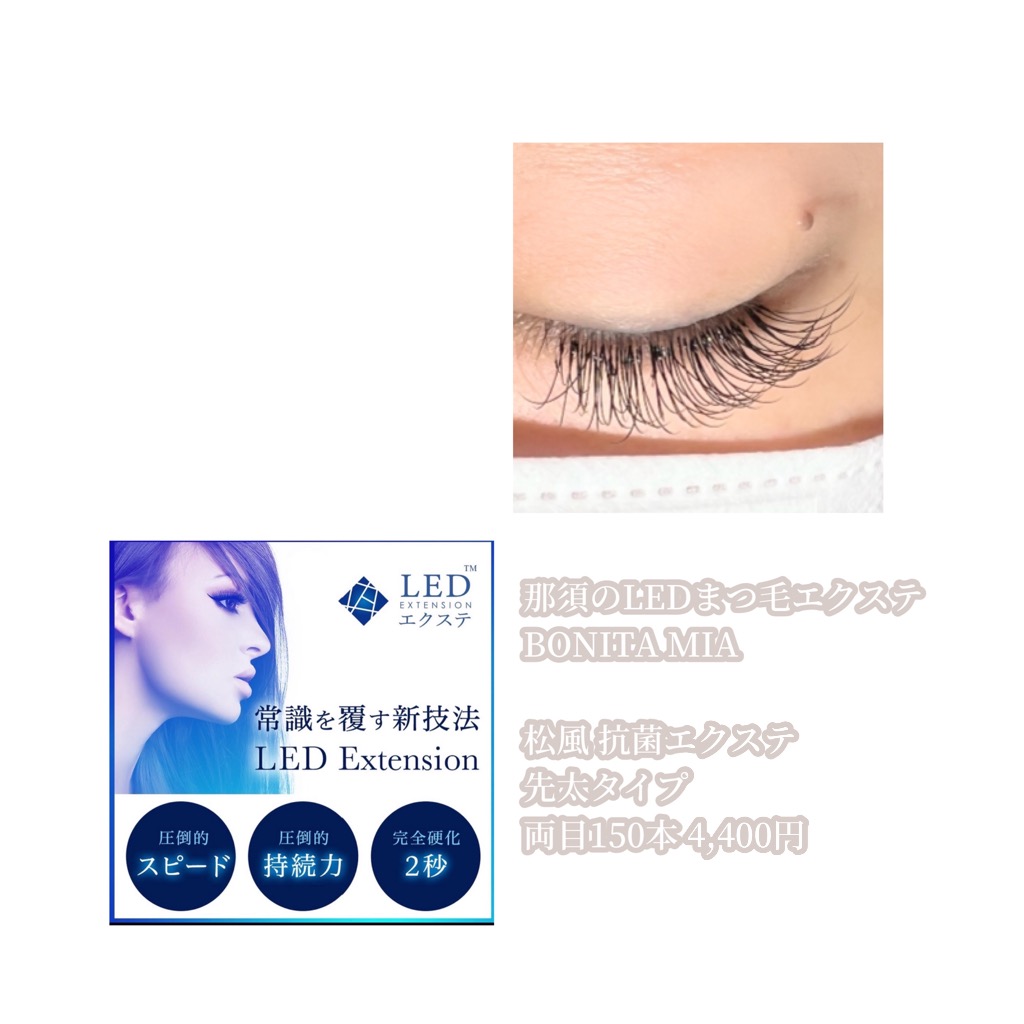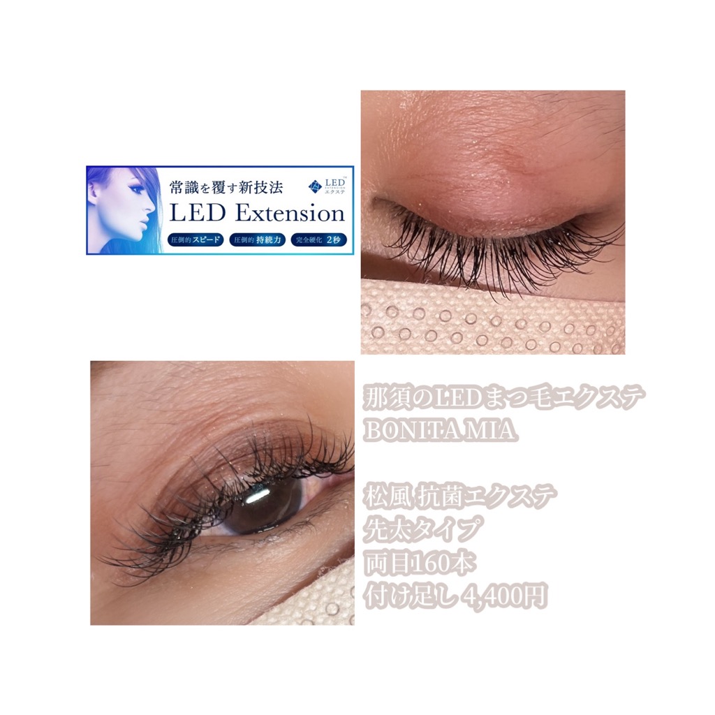 最新のまつ毛エクステ、LEDマツエクができる那須塩原の個室サロン“BONITA MIA(ボニータ ミア)”です。