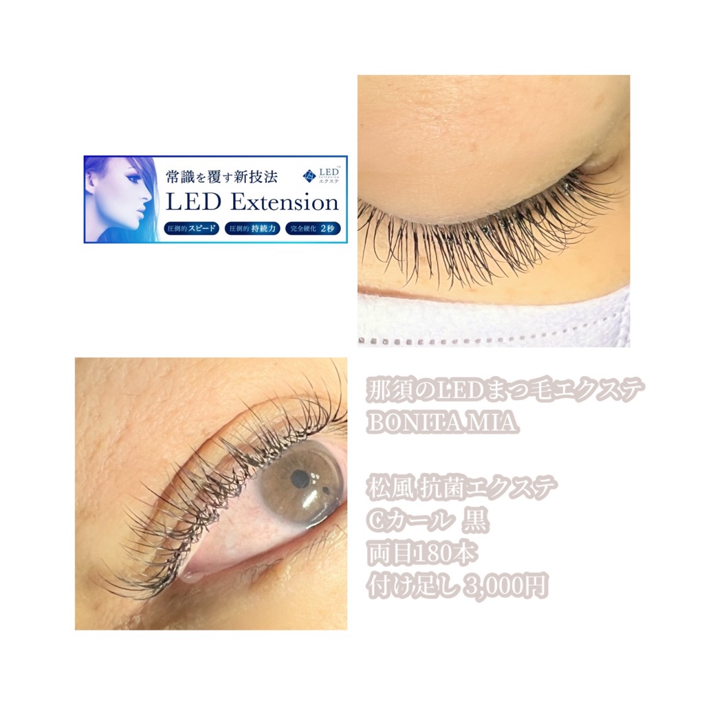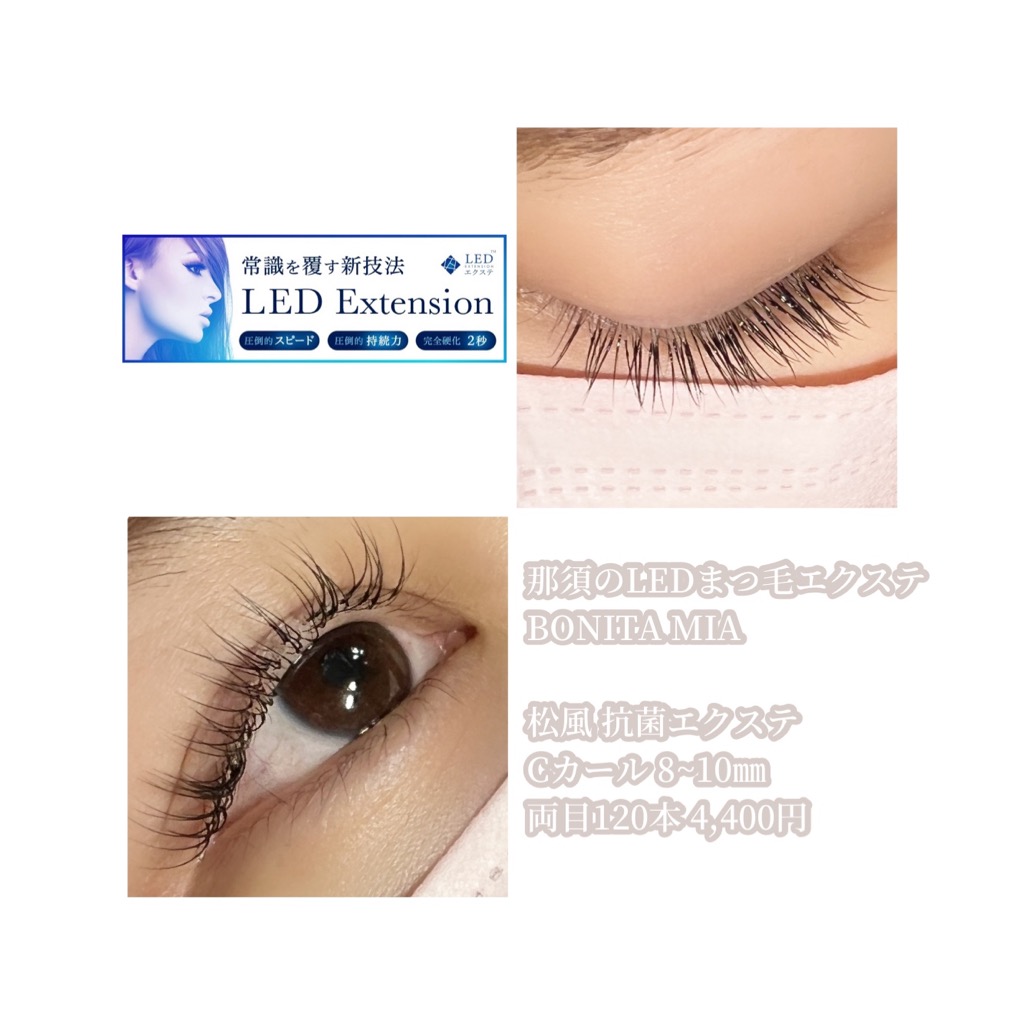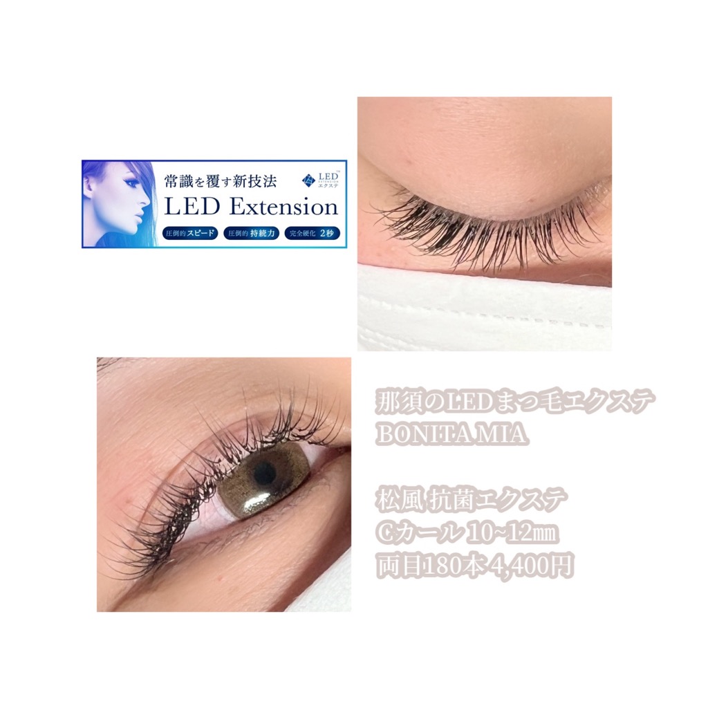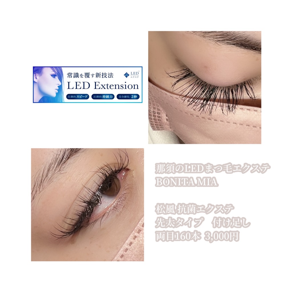 最新のまつ毛エクステ、LEDマツエクができる那須塩原の個室サロン“BONITA MIA(ボニータ ミア)”です。