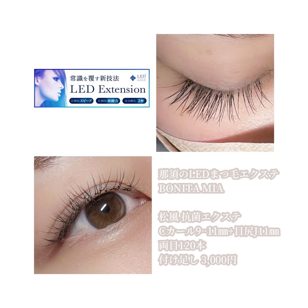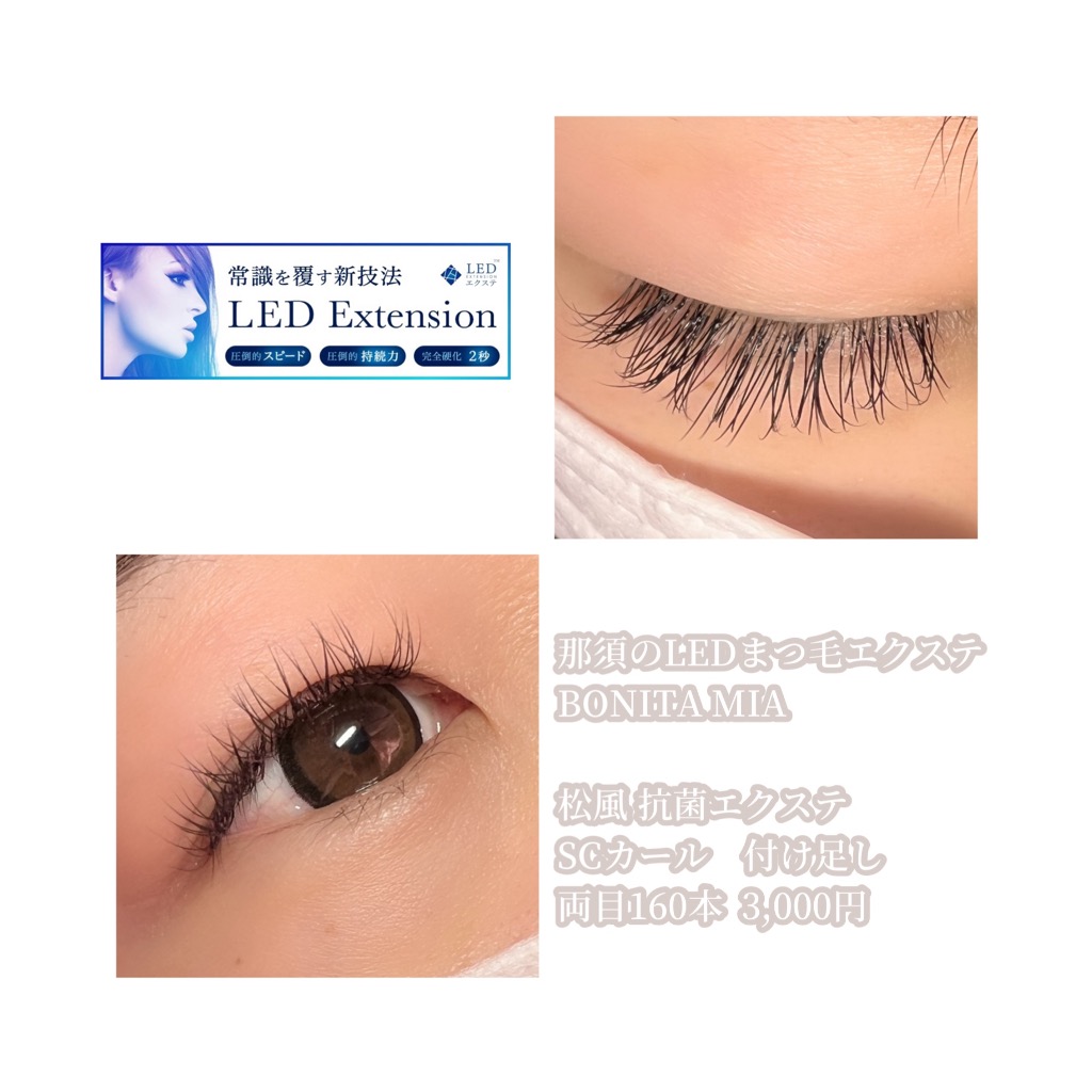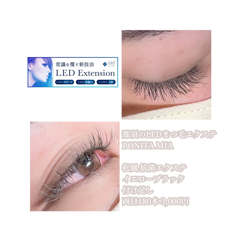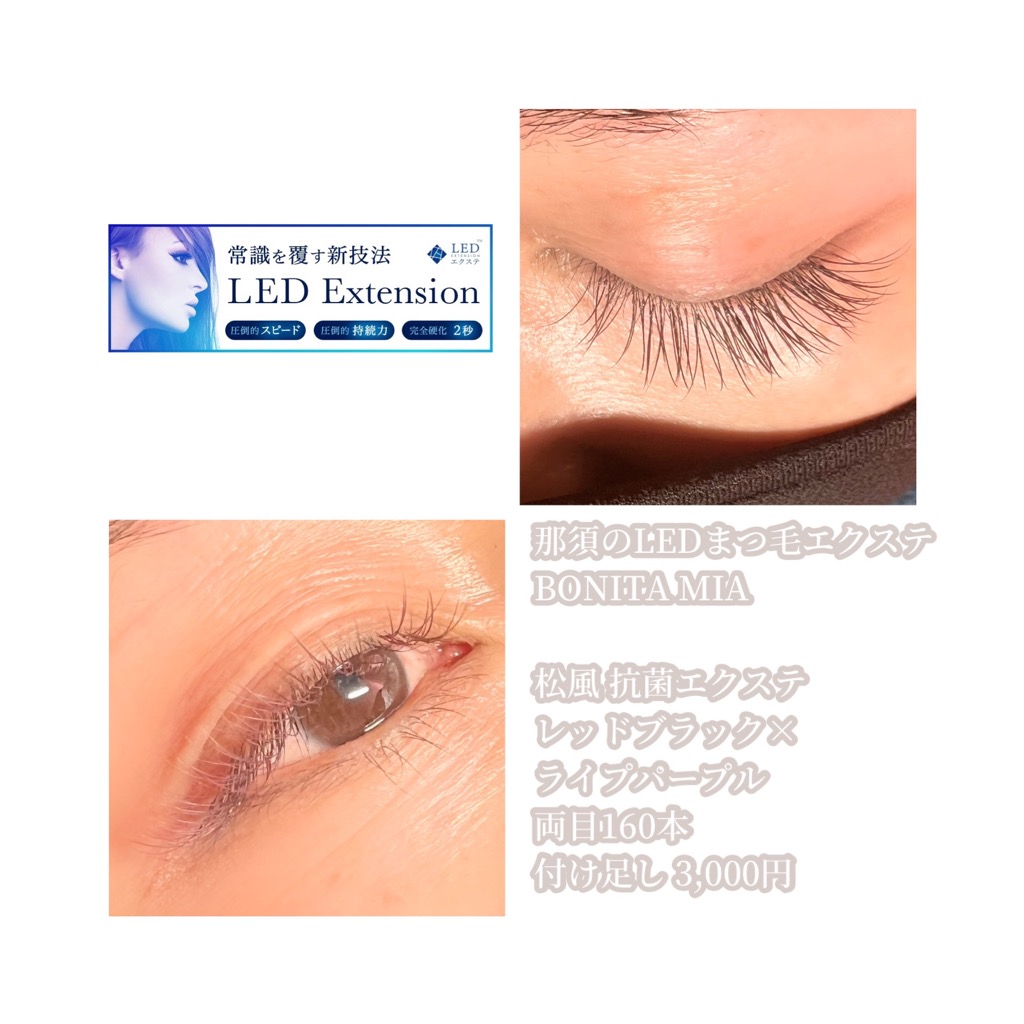 最新のまつ毛エクステ、LEDマツエクができる那須塩原の個室サロン“BONITA MIA(ボニータ ミア)”です。