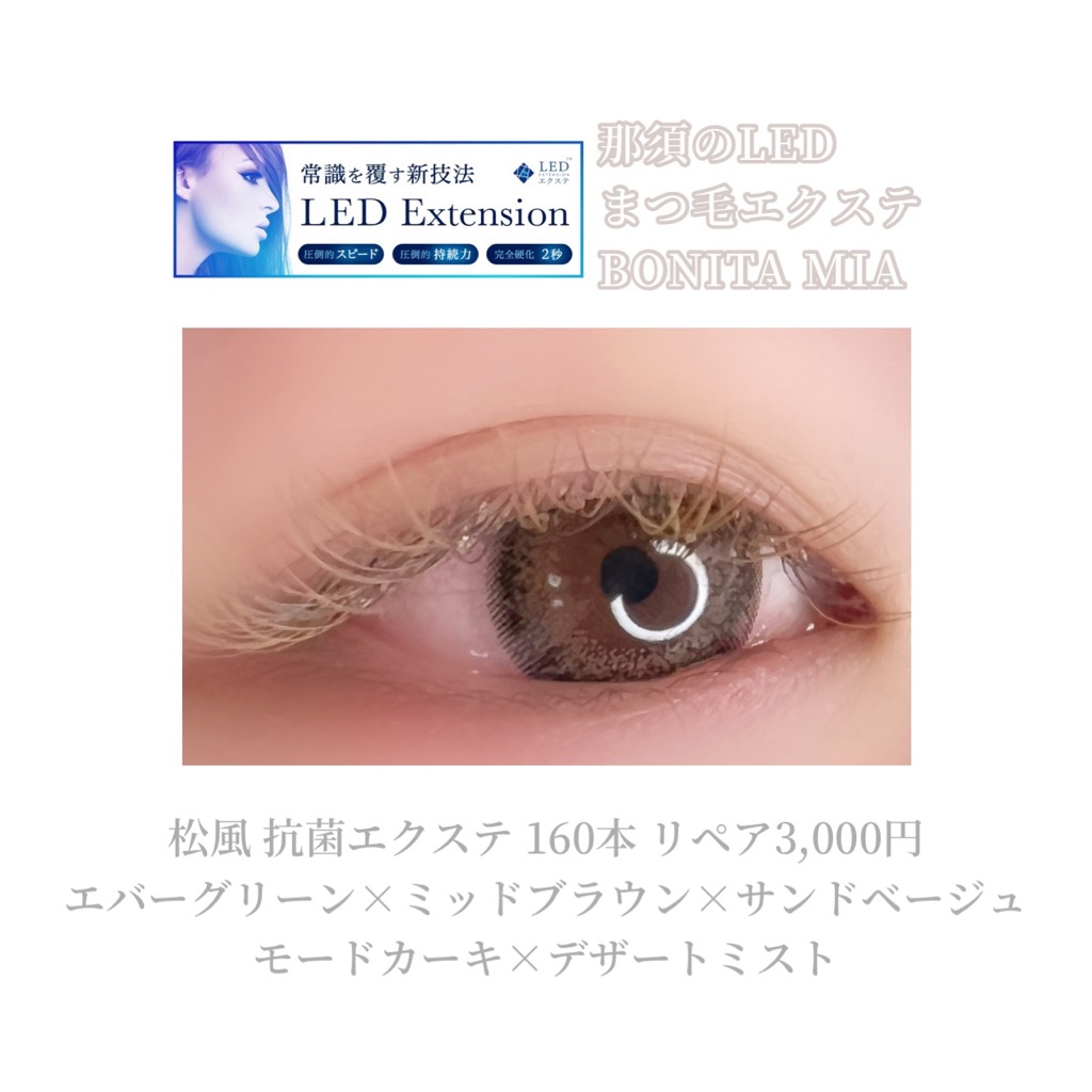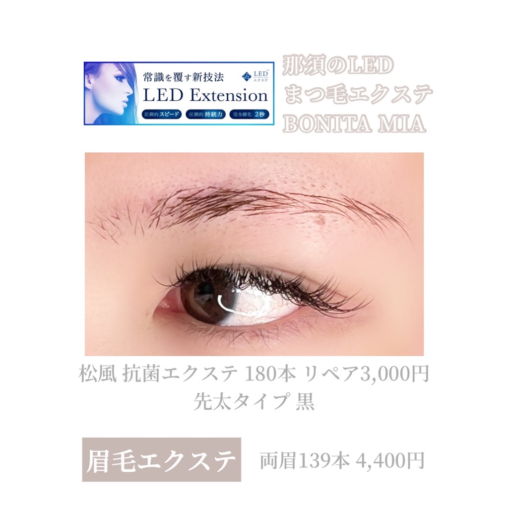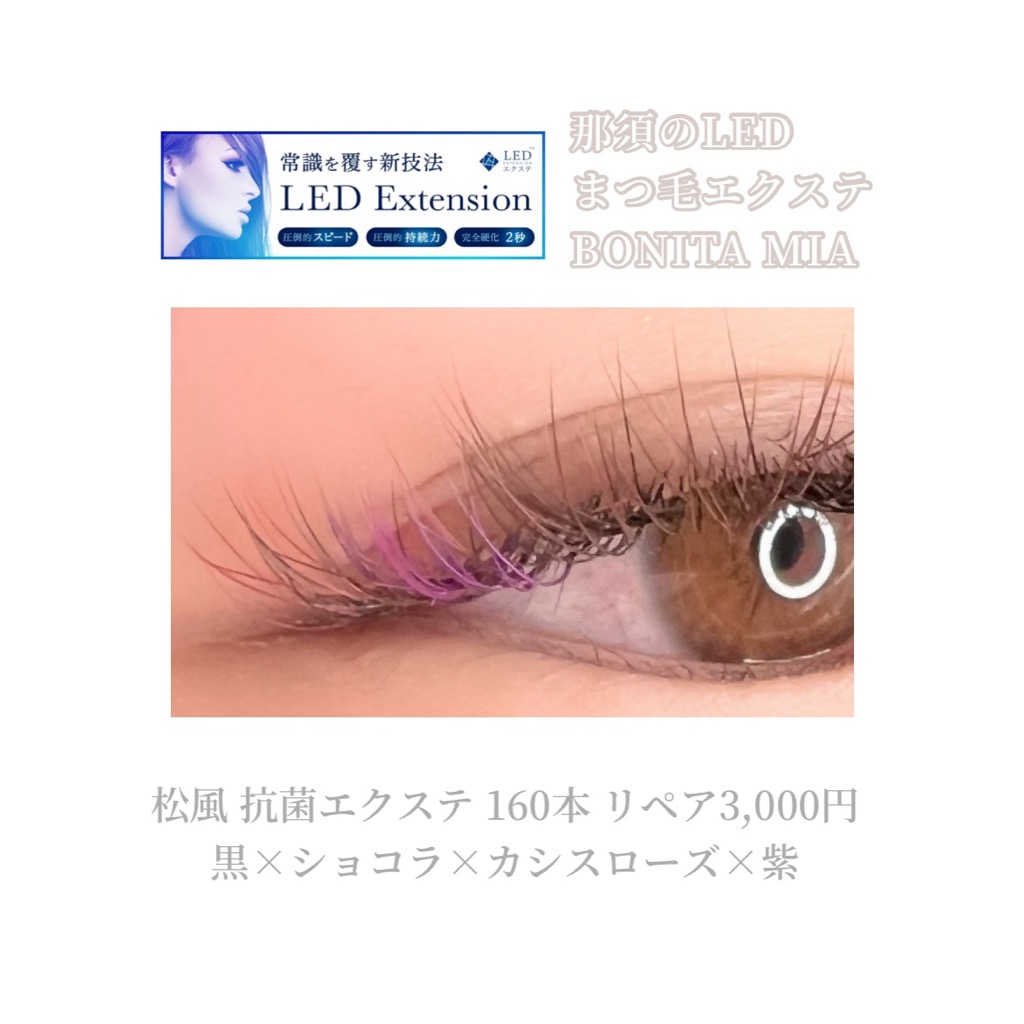 最新のまつ毛エクステ、LEDマツエクができる那須塩原の個室サロン“BONITA MIA(ボニータ ミア)”です。