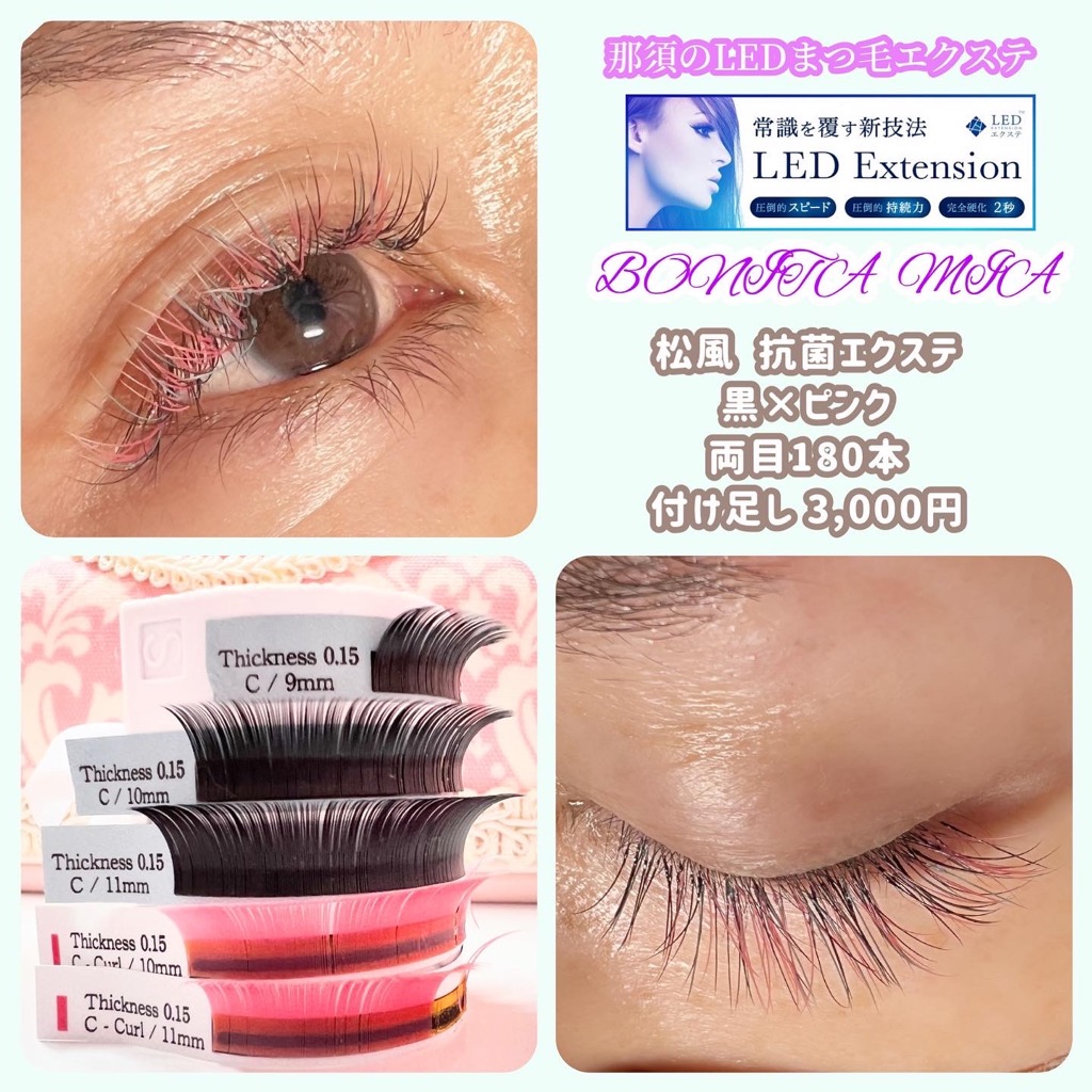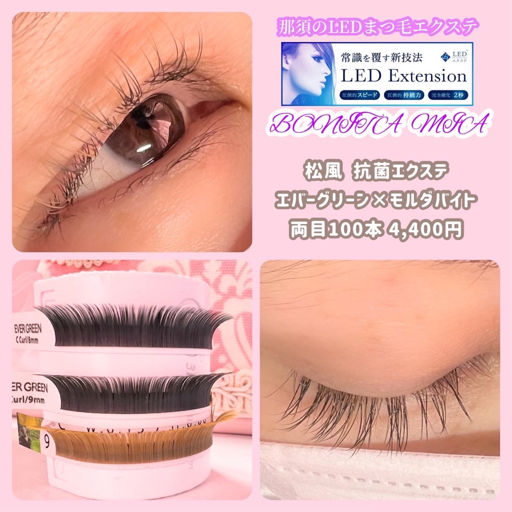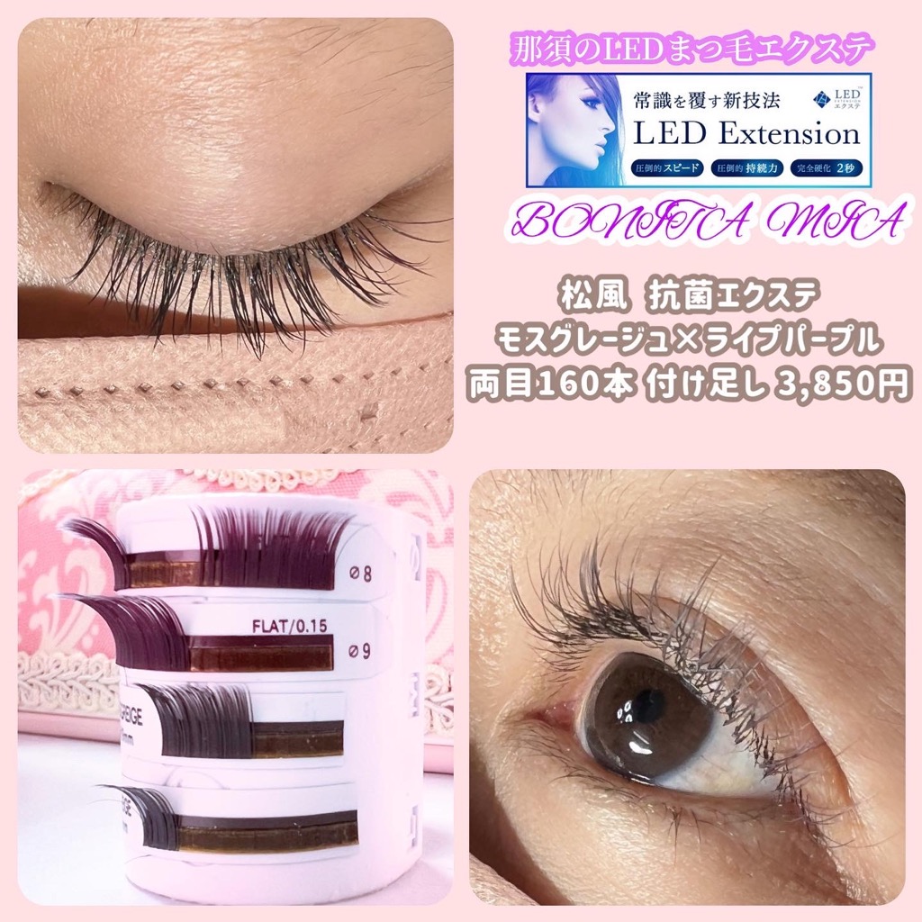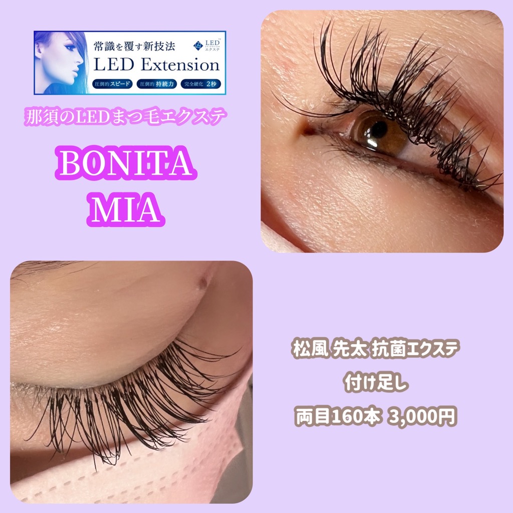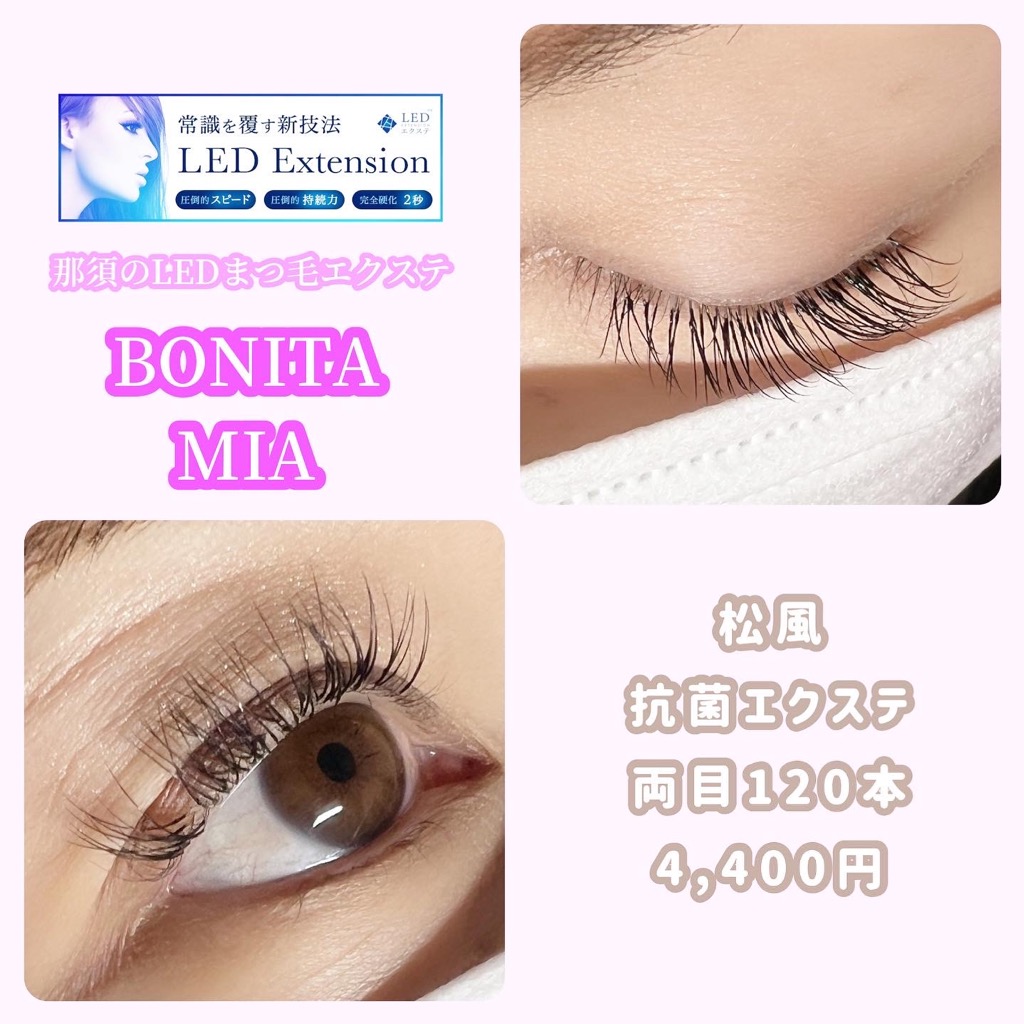 最新のまつ毛エクステ、LEDマツエクができる那須塩原の個室サロン“BONITA MIA(ボニータ ミア)”です。