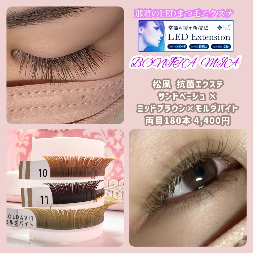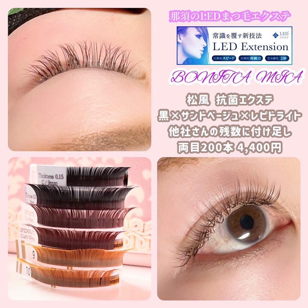 最新のまつ毛エクステ、LEDマツエクができる那須塩原の個室サロン“BONITA MIA(ボニータ ミア)”です。