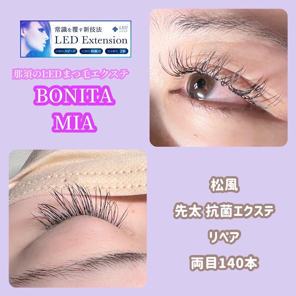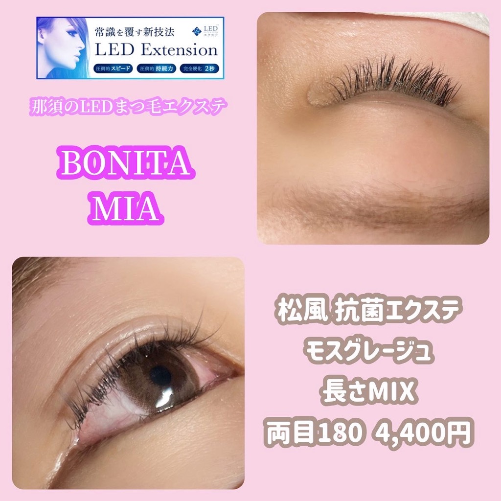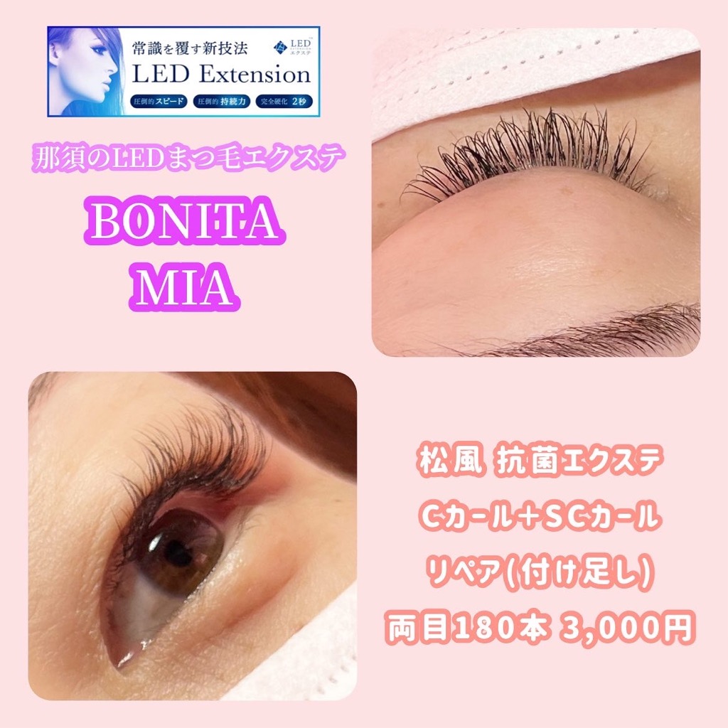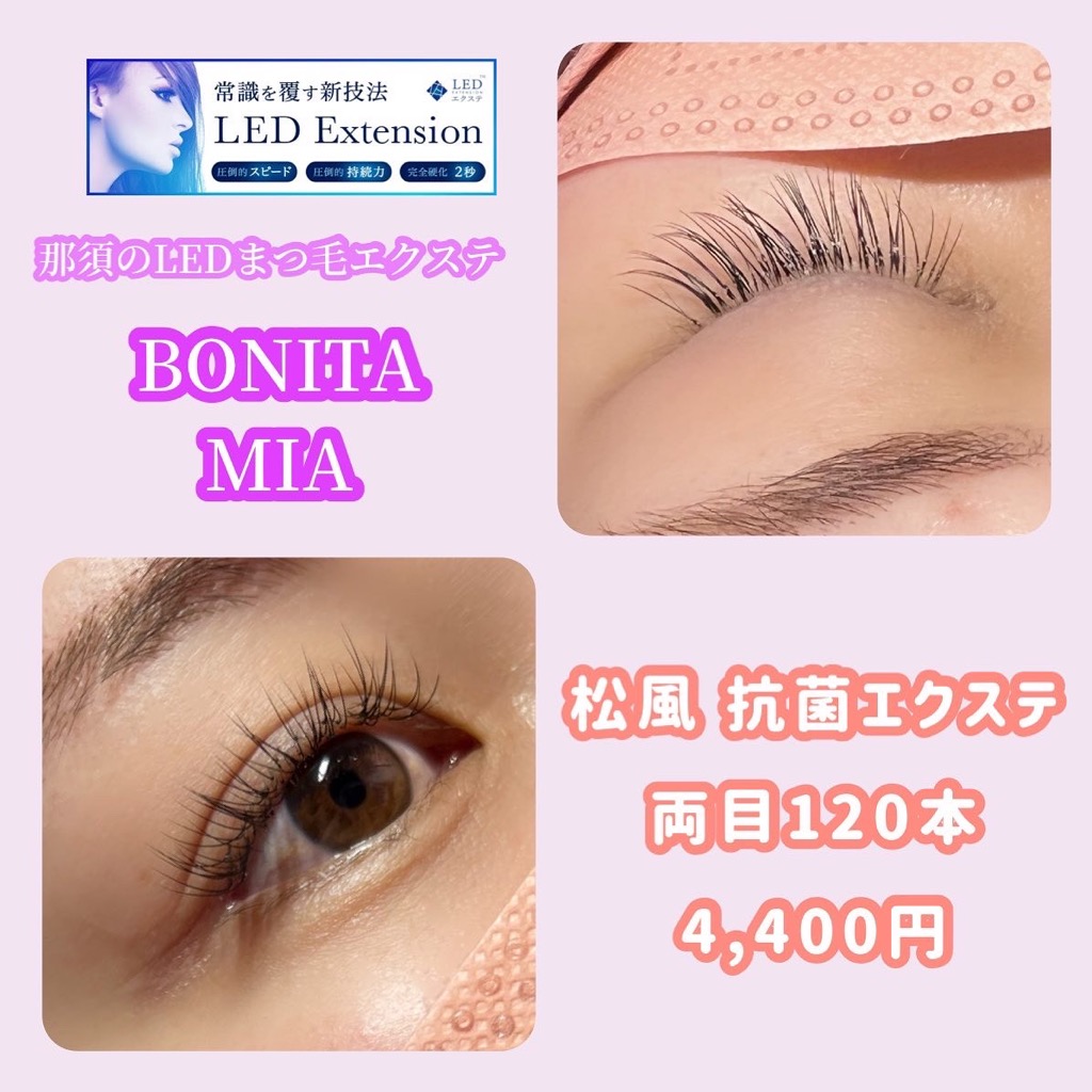 最新のまつ毛エクステ、LEDマツエクができる那須塩原の個室サロン“BONITA MIA(ボニータ ミア)”です。