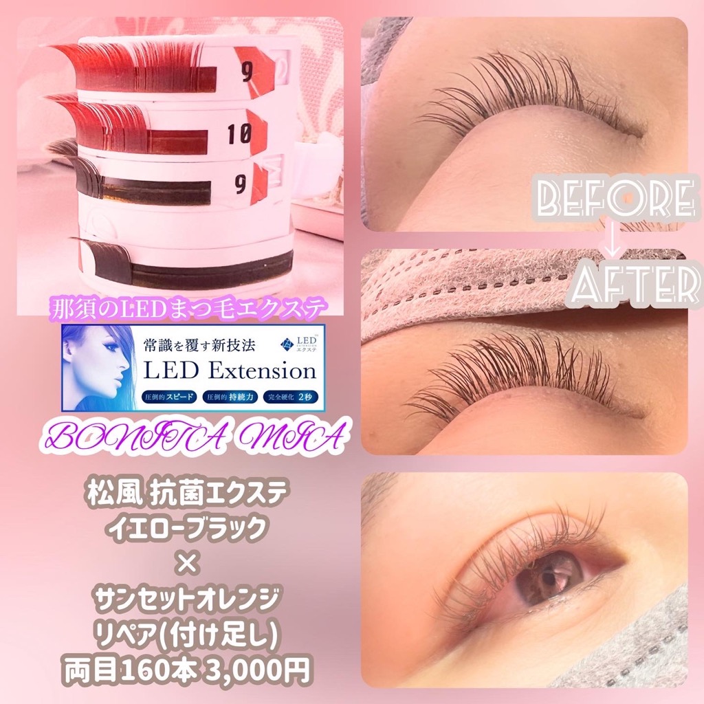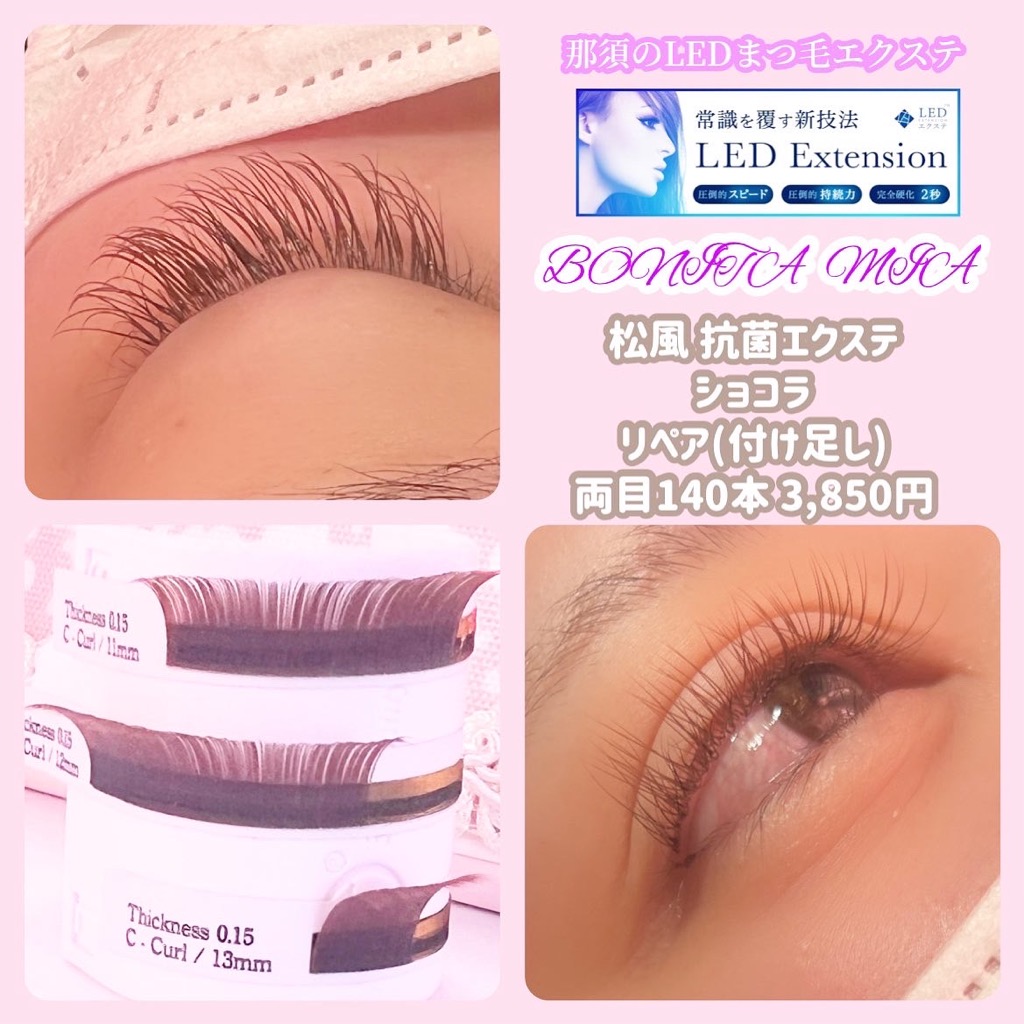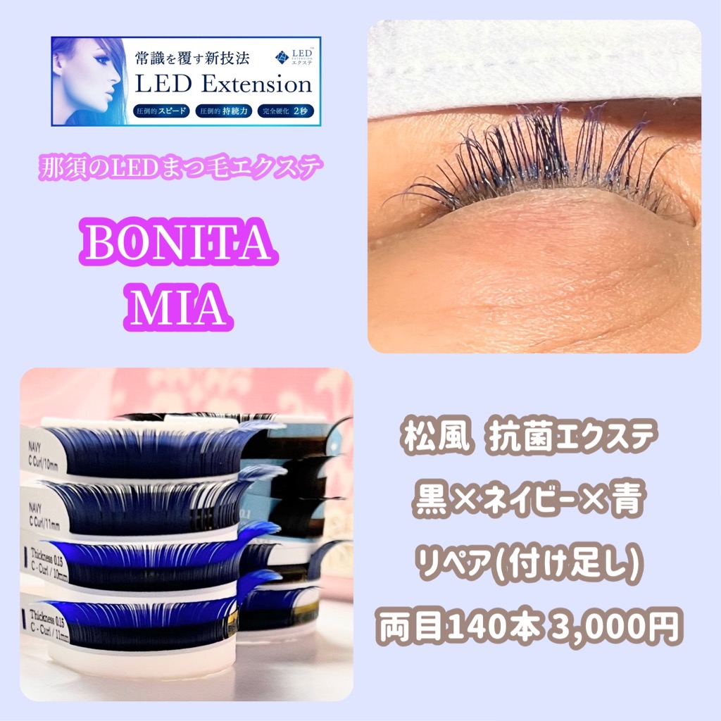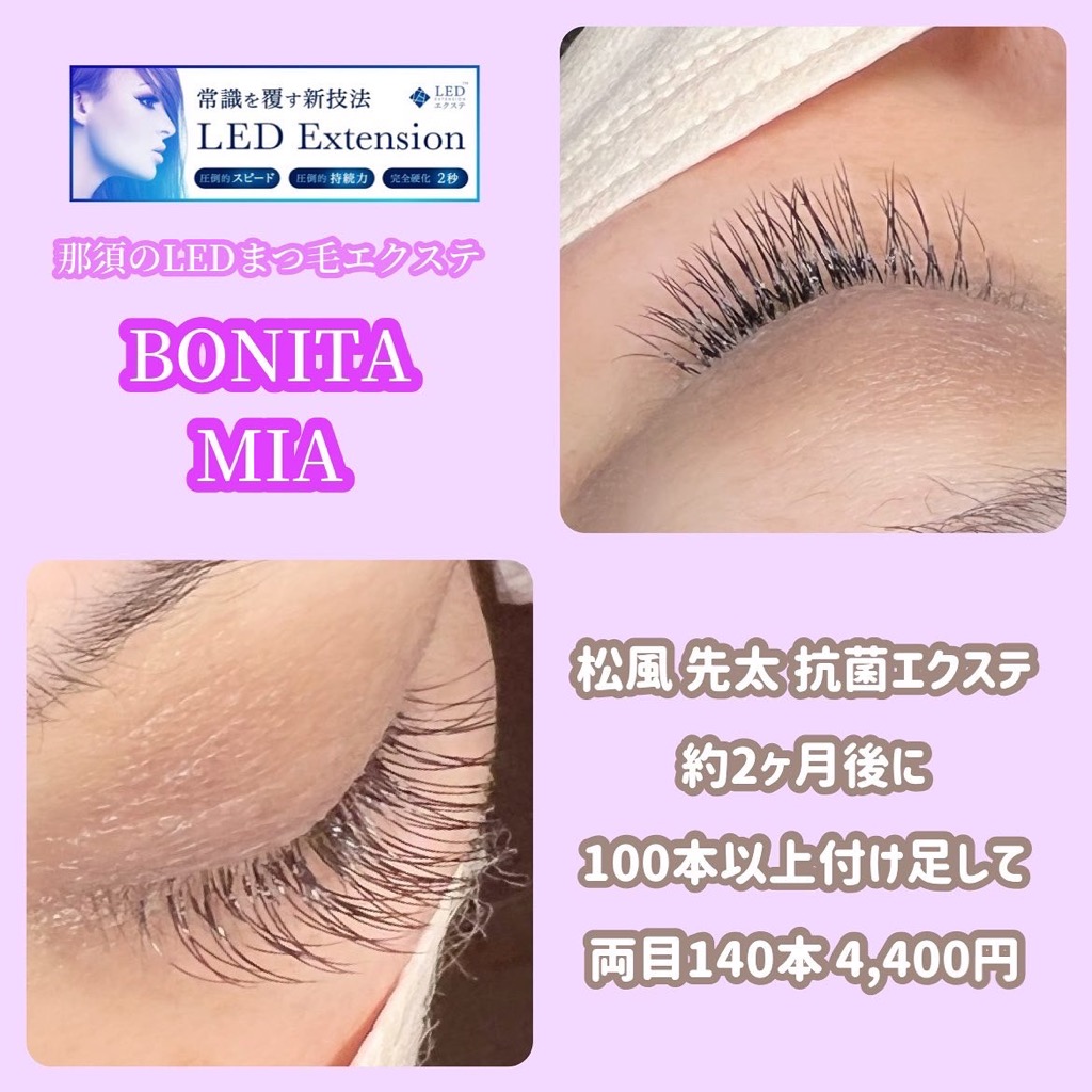 最新のまつ毛エクステ、LEDマツエクができる那須塩原の個室サロン“BONITA MIA(ボニータ ミア)”です。