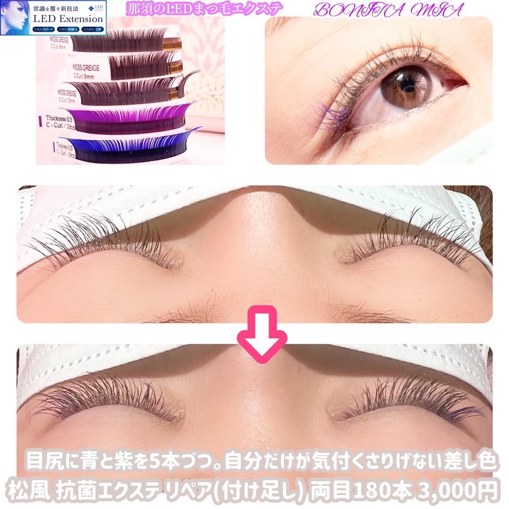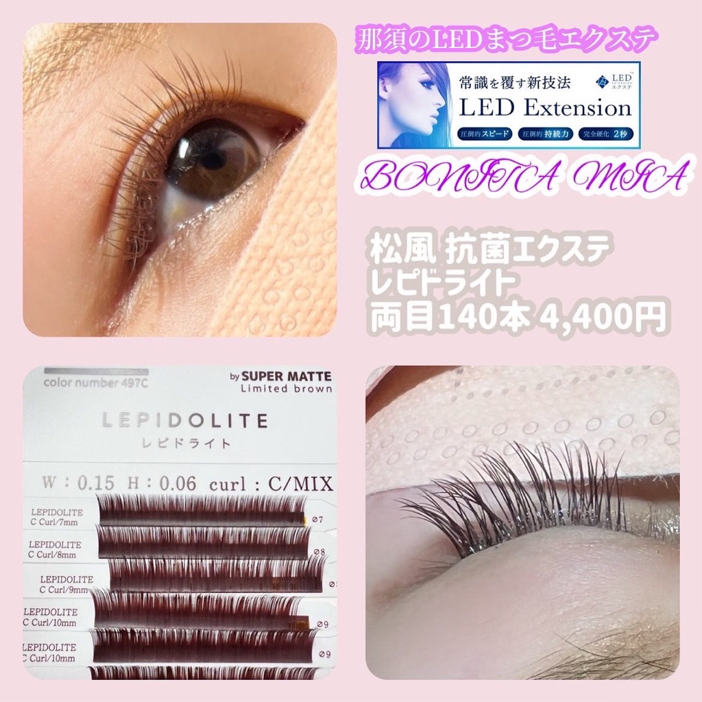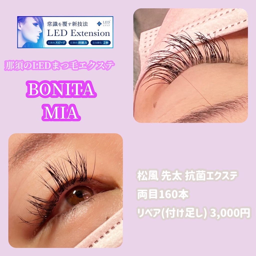 最新のまつ毛エクステ、LEDマツエクができる那須塩原の個室サロン“BONITA MIA(ボニータ ミア)”です。