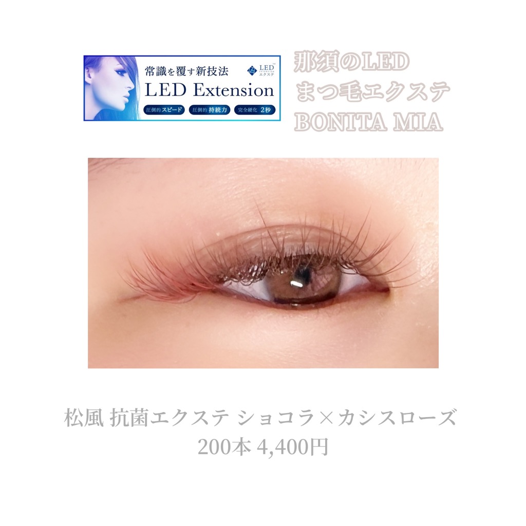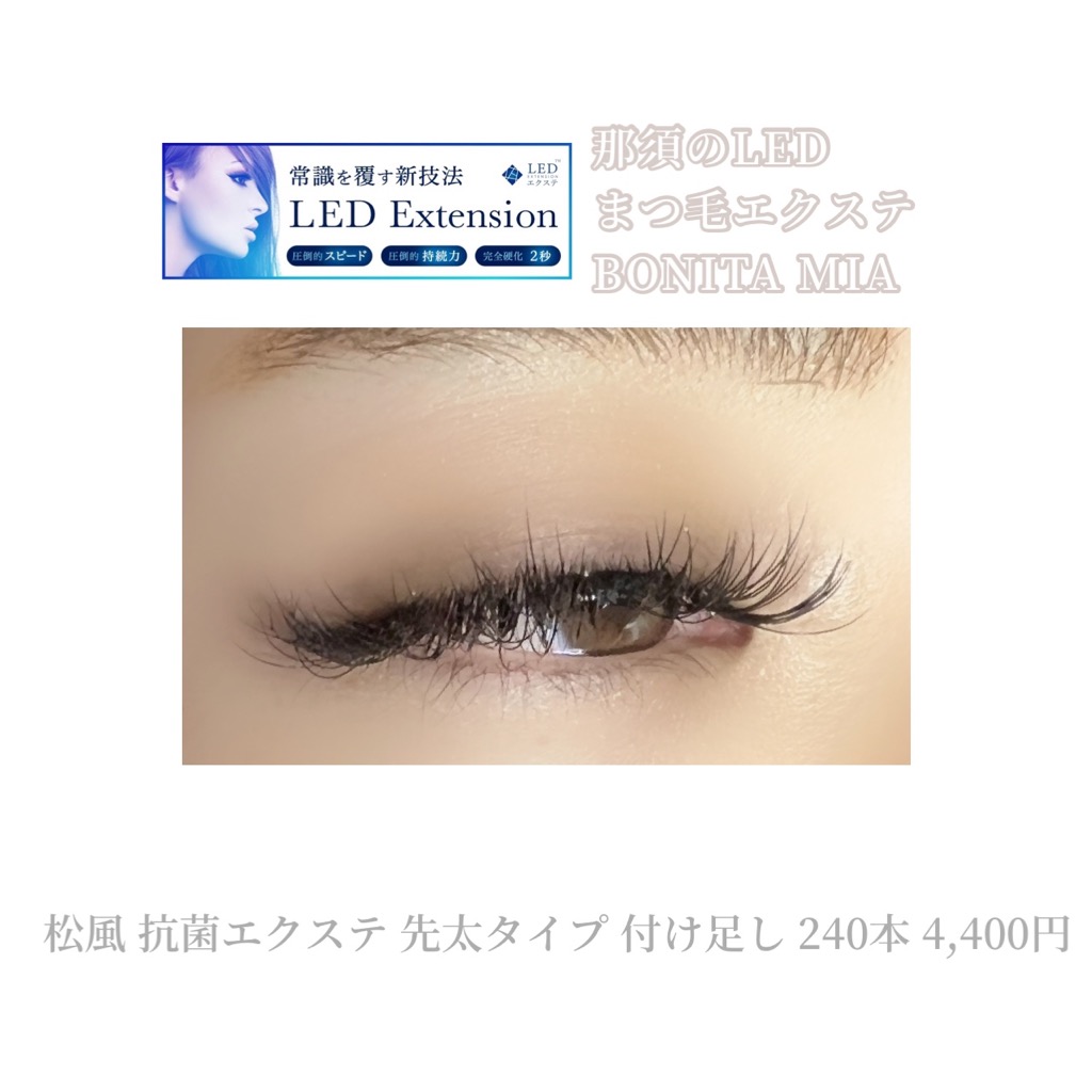 最新のまつ毛エクステ、LEDマツエクができる那須塩原の個室サロン“BONITA MIA(ボニータ ミア)”です。