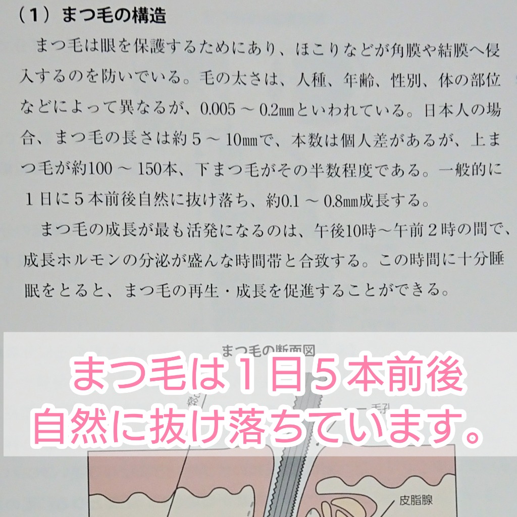 地まつ毛は毎日平均5本前後も自然に抜け落ちています。
