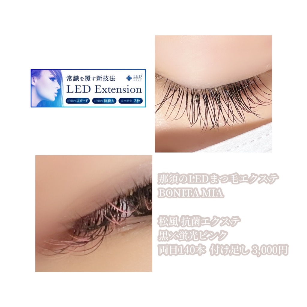 最新のまつ毛エクステ、LEDマツエクができる那須塩原の個室サロン“BONITA MIA(ボニータ ミア)”です。