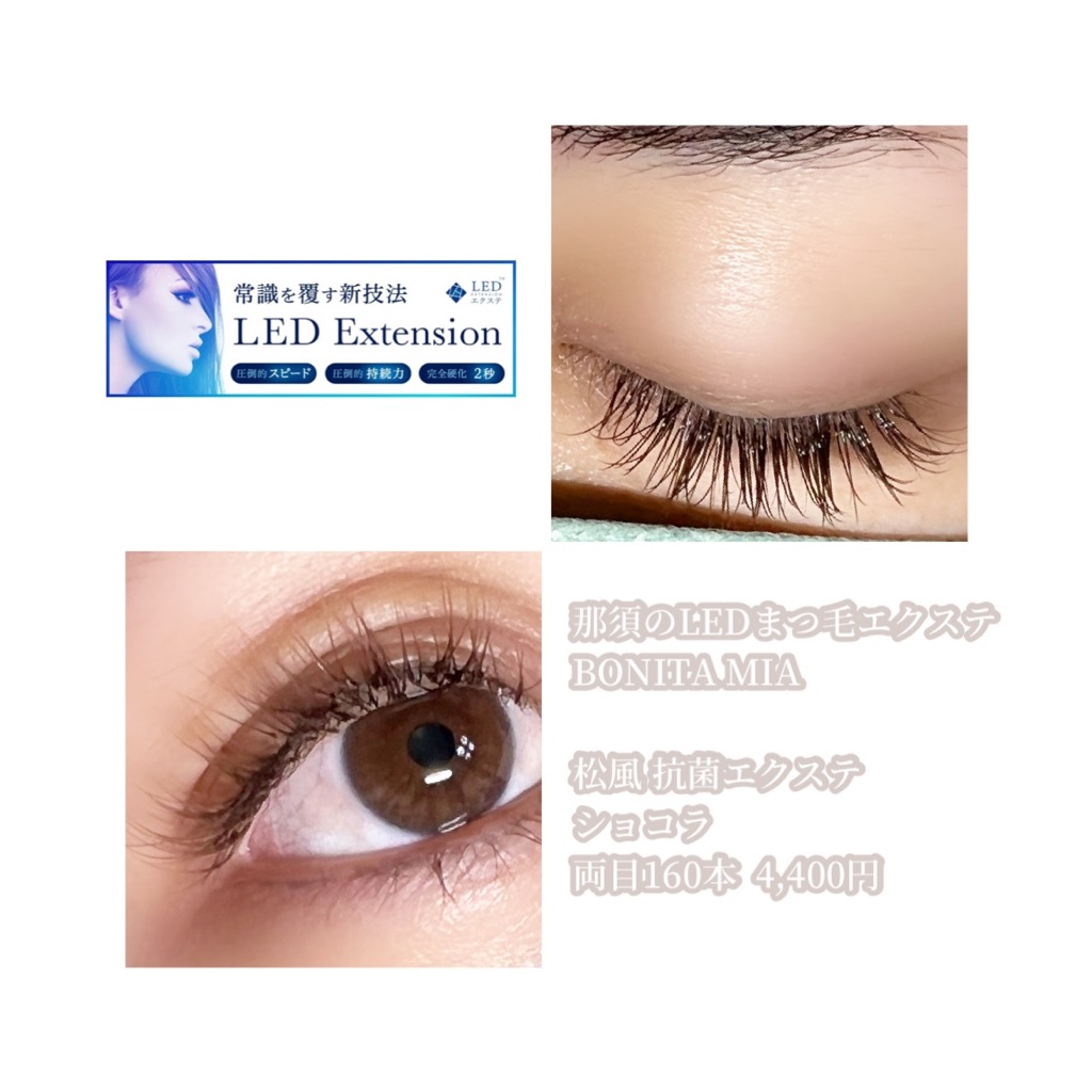 最新のまつ毛エクステ、LEDマツエクができる那須塩原の個室サロン“BONITA MIA(ボニータ ミア)”です。
